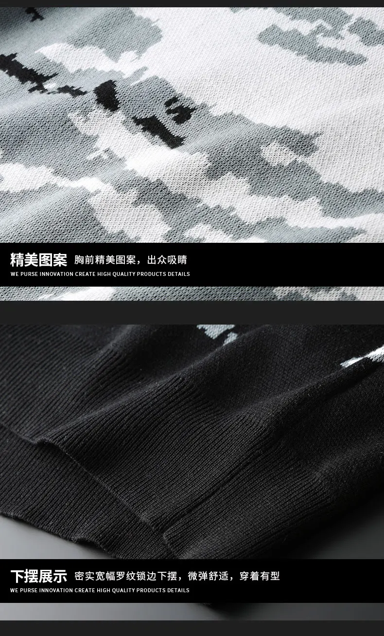 Мужской свитер Камуфляжный вязаный пуловер с круглым вырезом мужской джемпер осенние вязаные свитеры высококачественный кашемировый свитер серый черный