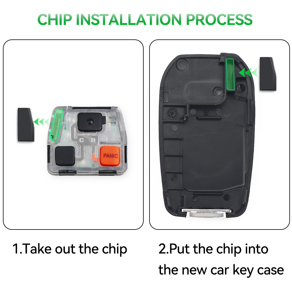 3. Перед использованием Отрежьте лезвие, Затем возьмите внутренний электрон (включая иммобилайзер/транспондер) с оригинального пульта ДУ и поместите его в наш корпус ключа, тогда вы будете готовы!