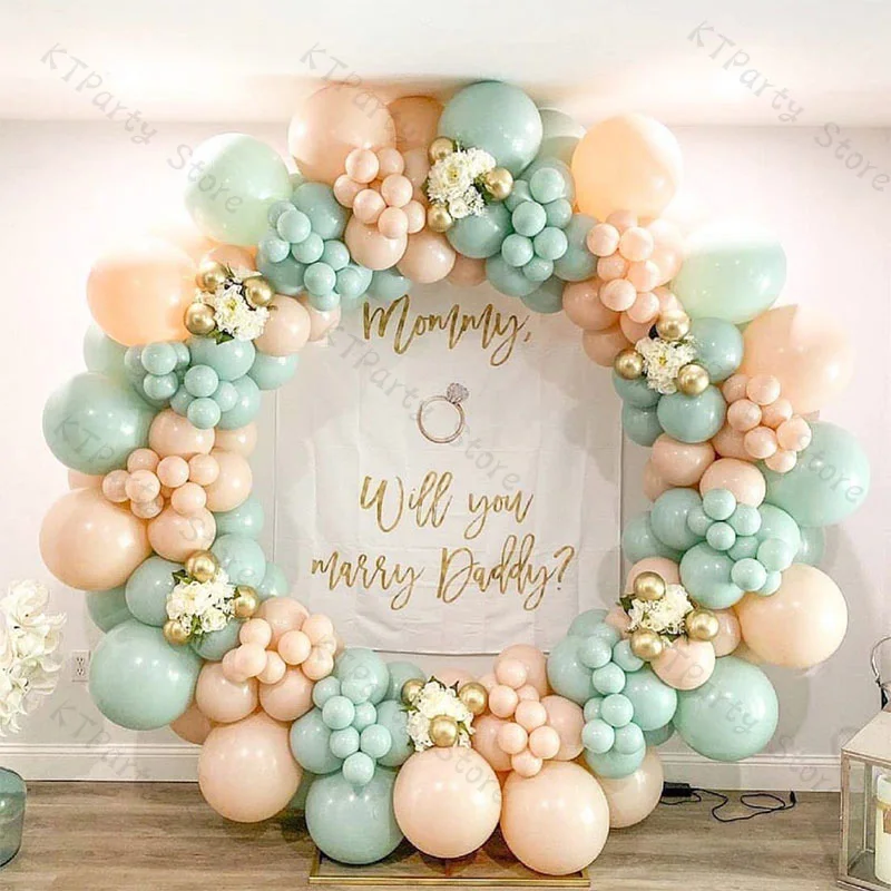190 шт., украшения для свадебной вечеринки, мятно-зеленые воздушные шары-гирлянды, декор для дня рождения, кремовый, персиковый, коричневый, баллон, арка, металл, золото