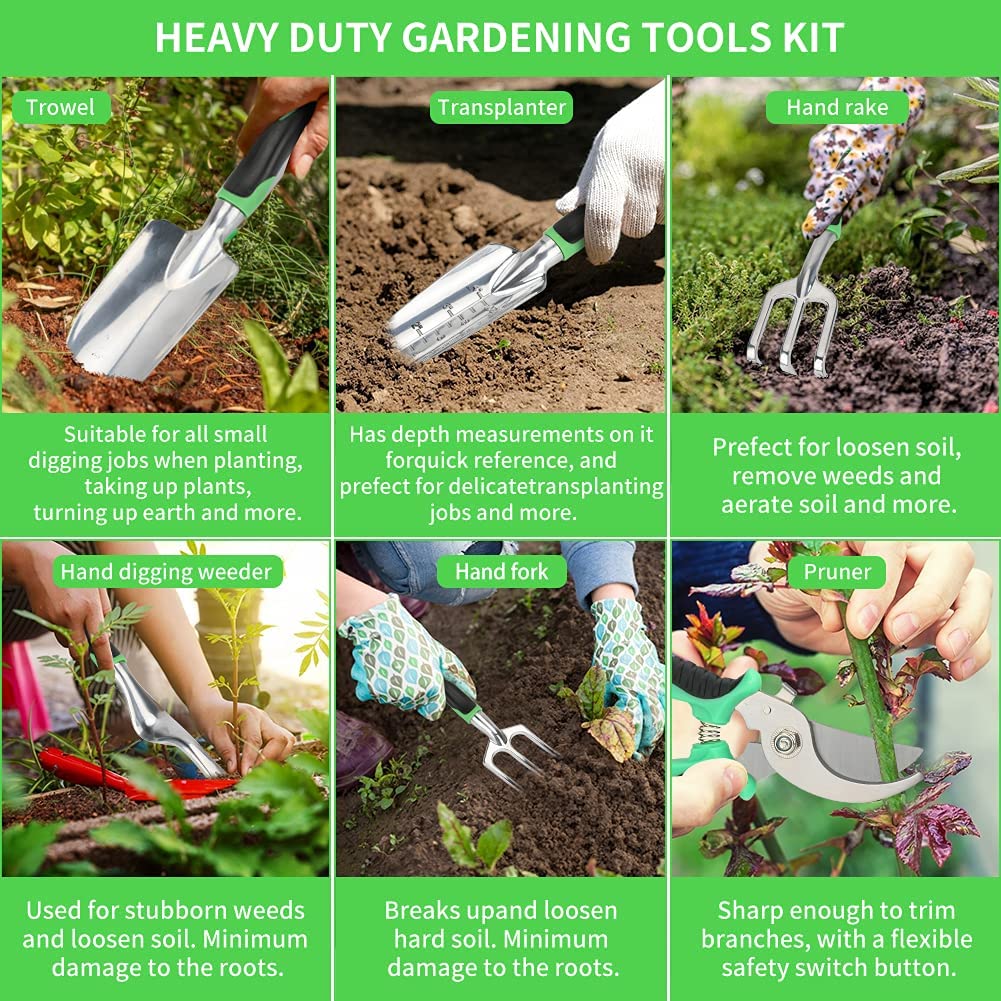 Ручной комплект набор инструментов для садоводства изготовлена из прочного и прочный Алюминиевый сплав Материал, используется для долгое время. Подходит практически для любого возраста использования. Идеальный подарок для всех любителей сада.