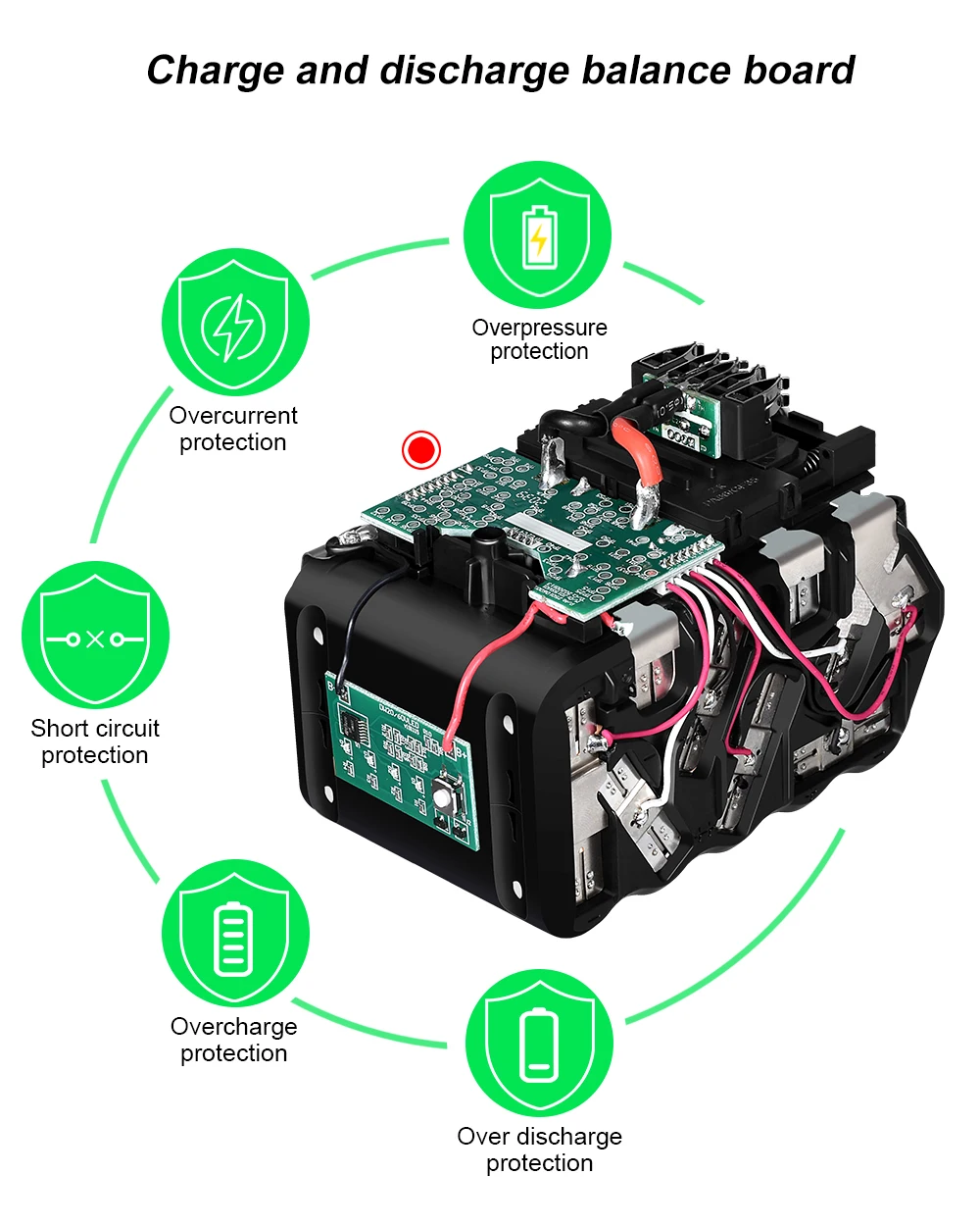 Этот аккумулятор оснащен балансовой платой заряда-разряда. Плата баланса может сделать Аккумулятор более сбалансированным при зарядке и работе, продлить срок службы батареи и сделать батарею более стабильной.