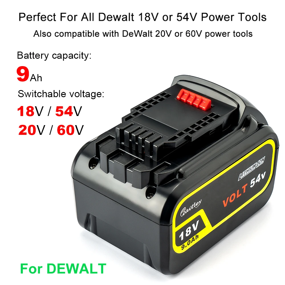 Совместимость: Замените Dewalt 18 В/54 в XR аккумулятор DCB606 DCB546 DCB547 и совместим со всеми инструментами Dewalt 18 в XR и 54 в XR.