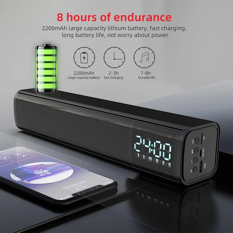 Портативный беспроводной Bluetooth-Динамик многофункциональный спикер, настольный динамик TF SD-карта мобильный телефон, мультимедийный будильник, звуковая коробка FM
