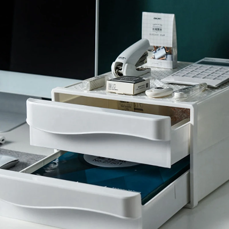 A4 Paper Documents Cards Office Desktop Storage Box Drawer Type Mobile Phones Pens 2-Layer Home School Plastic Shelf