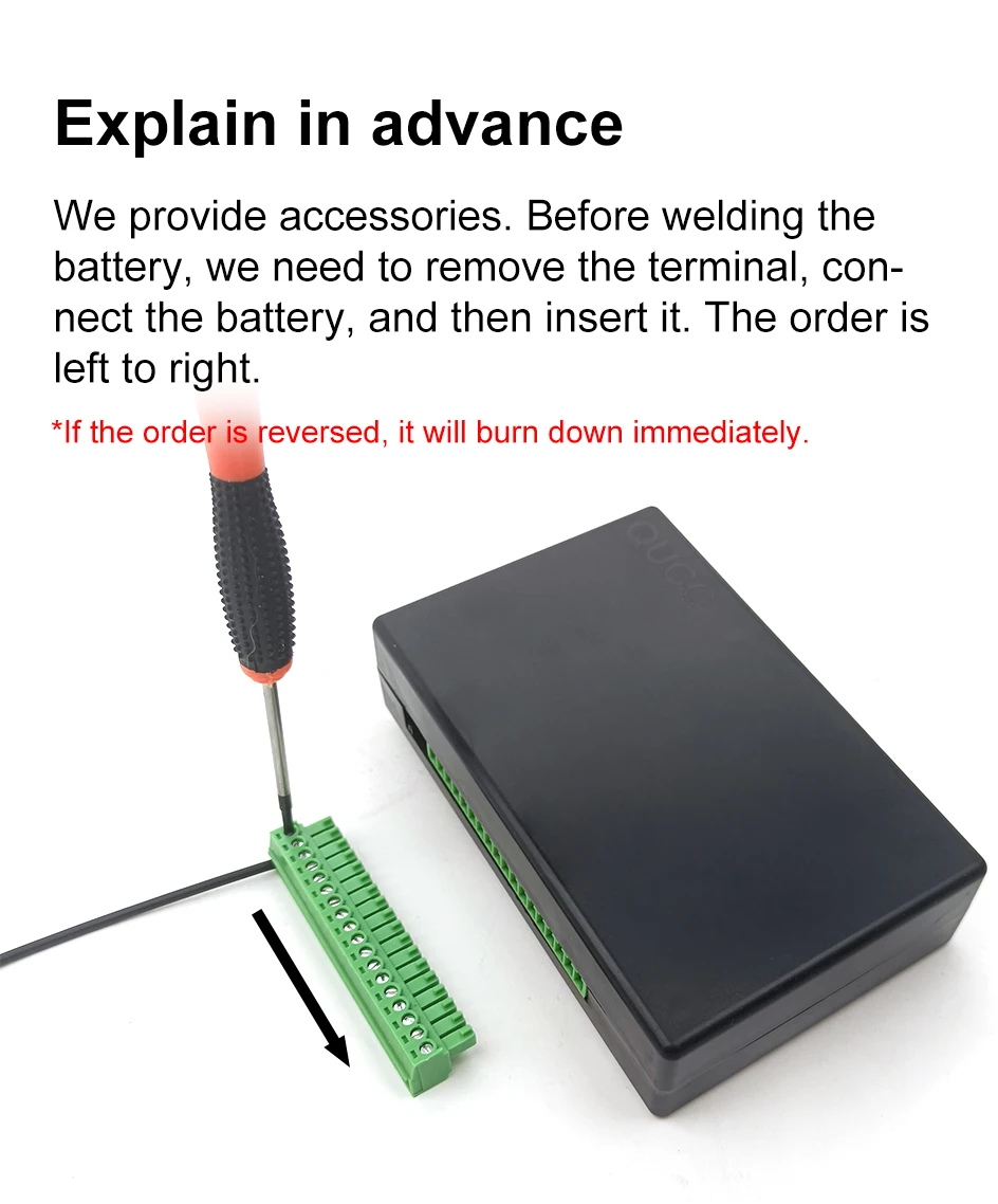 1) пожалуйста, тщательно Подключите каждый кабель баланса, неправильная проводка повредит балансировщик.