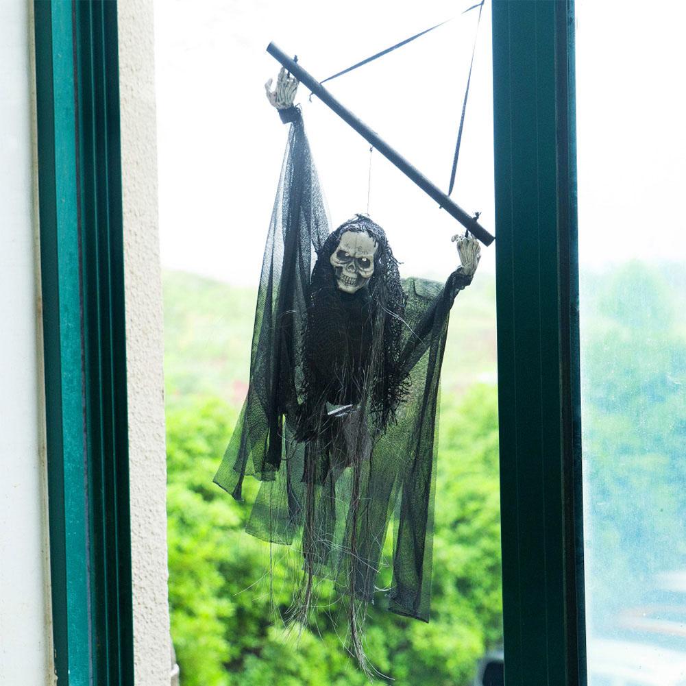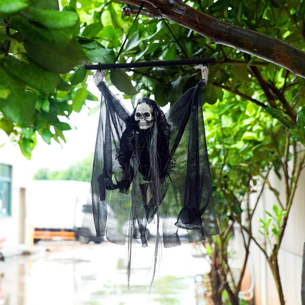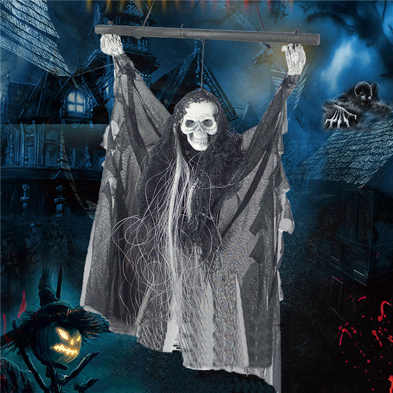 Хэллоуин ужас подвесной ЧЕРЕП Ghost Голосовое управление светящийся страшный Скелет Grim Reaper украшение дома двери вечерние бар клуб реквизит