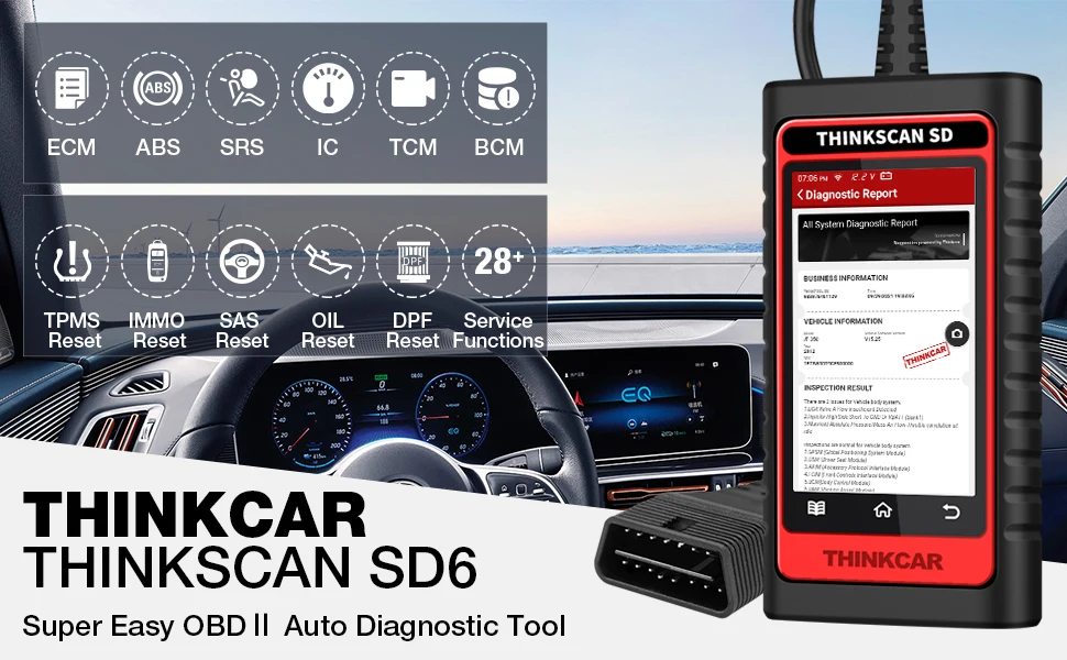 ThinkCar ThinkScan SD6 OBD2 сканер двигателя ABS SRS ECM TCM BCM IC автоматический диагностический инструмент с 28 функцией сброса (5 Функция сброса бесплатно опционально) Пожизненное бесплатное обновление + 8 Langauge поддержка OBDII сканер кода
