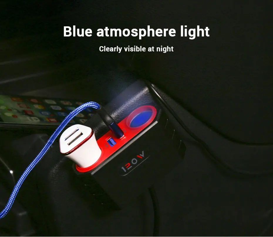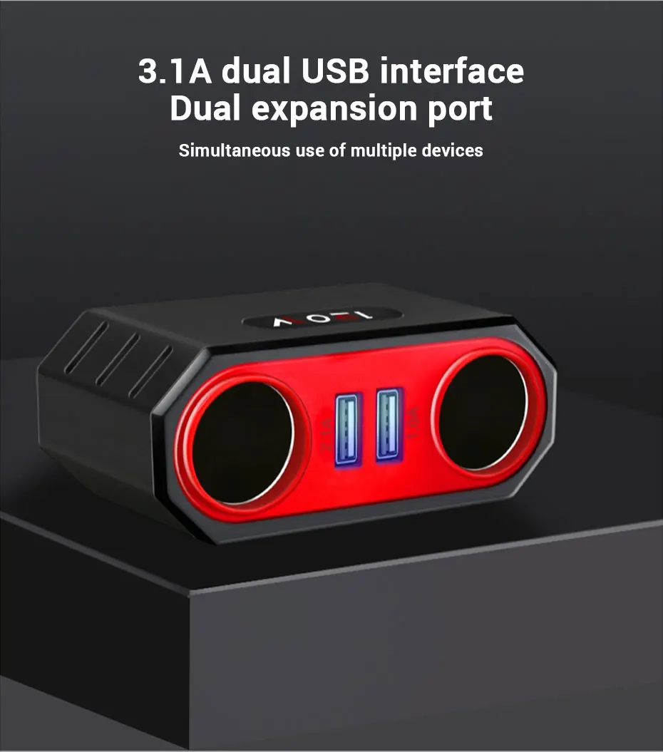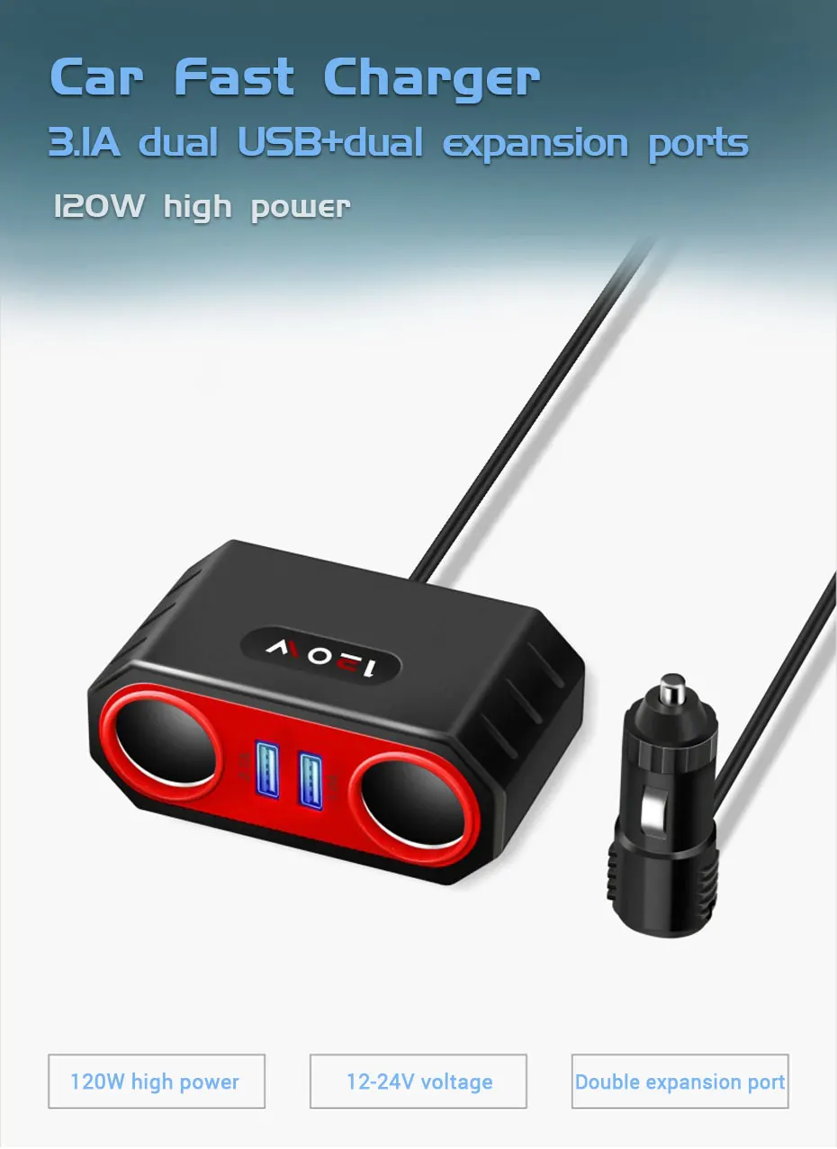 2.3.1 двойной интерфейс USB плюс двойной интерфейс прикуривателя, 120 Вт высокой мощности, для достижения использования нескольких устройств.