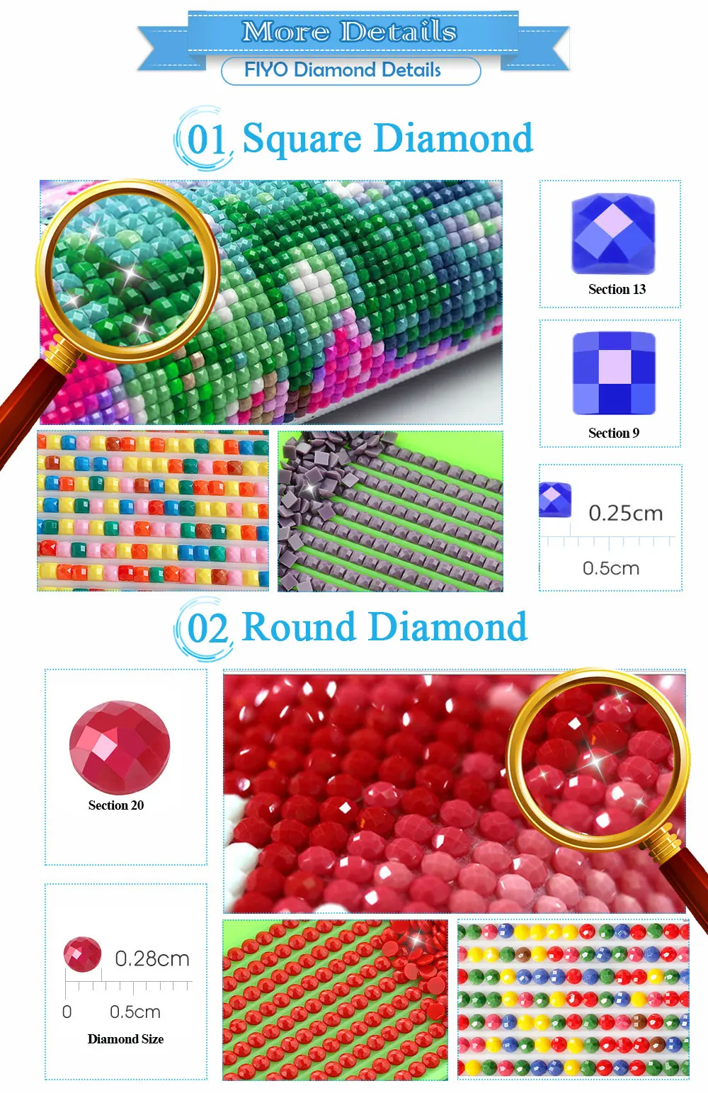 ◆Плотно прилегающие блестящие бриллианты:FIYO использует Акриловые АЛМАЗЫ, которые соответствуют оригинальным DMC цветам, которые дают вам в два раза больше блеска и отличный мозаичный вид.