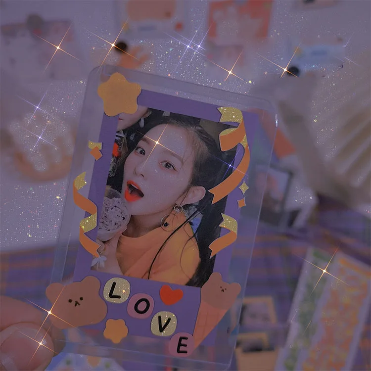 Это чехол для карт «сделай сам» со звездой идолом. Вы можете поместить свой любимый кумир или ломо-карту, вы также можете поместить свои собственные красивые фотографии. Вы можете украсить чехол для карты наклейками. Это действительно красиво,