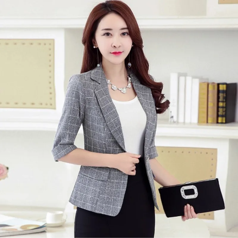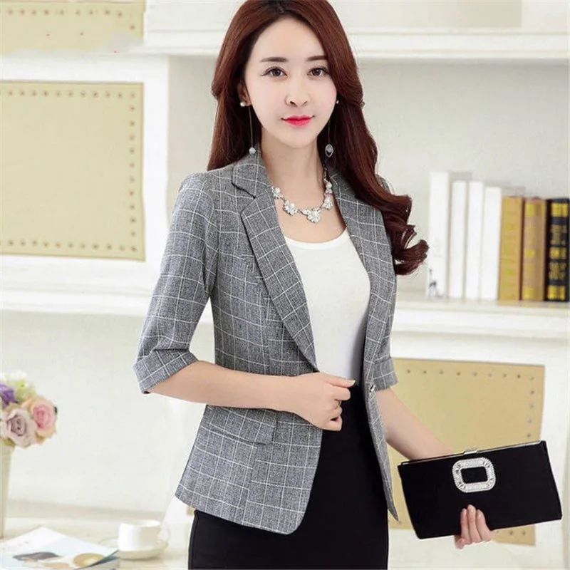 S-3XL, модная новинка, женский маленький костюм с рукавом девять точек, офисный женский короткий пиджак, тонкий повседневный костюм, клетчатый Топ, пальто
