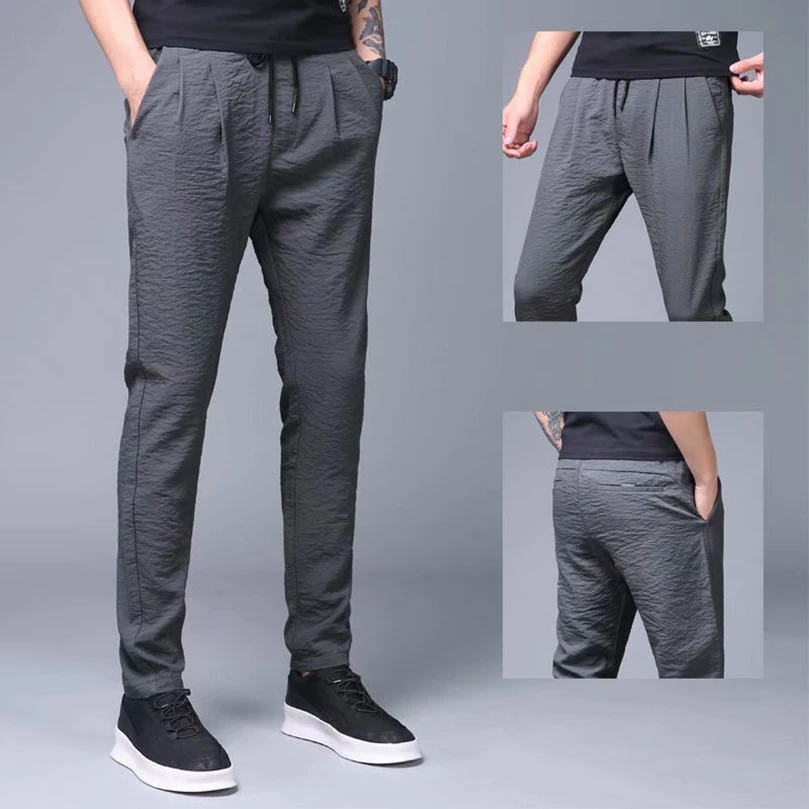 Летние тонкие длинные штаны для мужчин, ледяная шелковая сетка, крутые эластичные спортивные штаны для бега, дышащий спортивный костюм, воздухопроницаемые брюки 2021