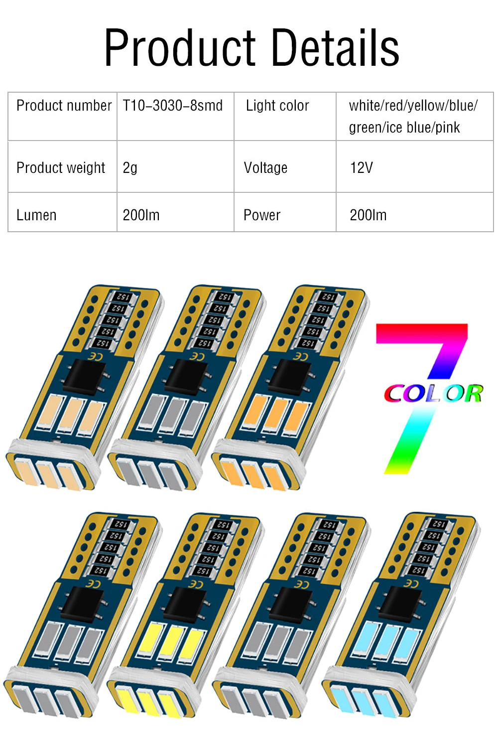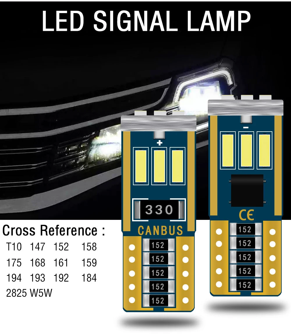T10: License light, door light, Reading light, Side marker light, trunk light etc.