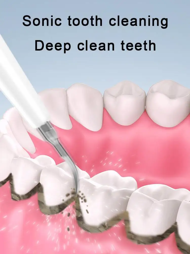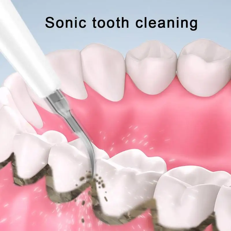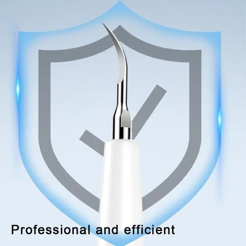 Оснащен многофункциональным электрическим очистителем зубов с острым носком, плоской головкой и головкой зубной щетки. Быстро и эффективно удаляет зубной налет, зубной камень и зубной камень на поверхности зубов и между зубцами.