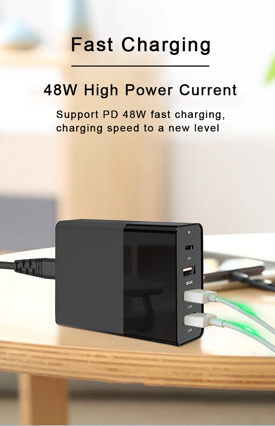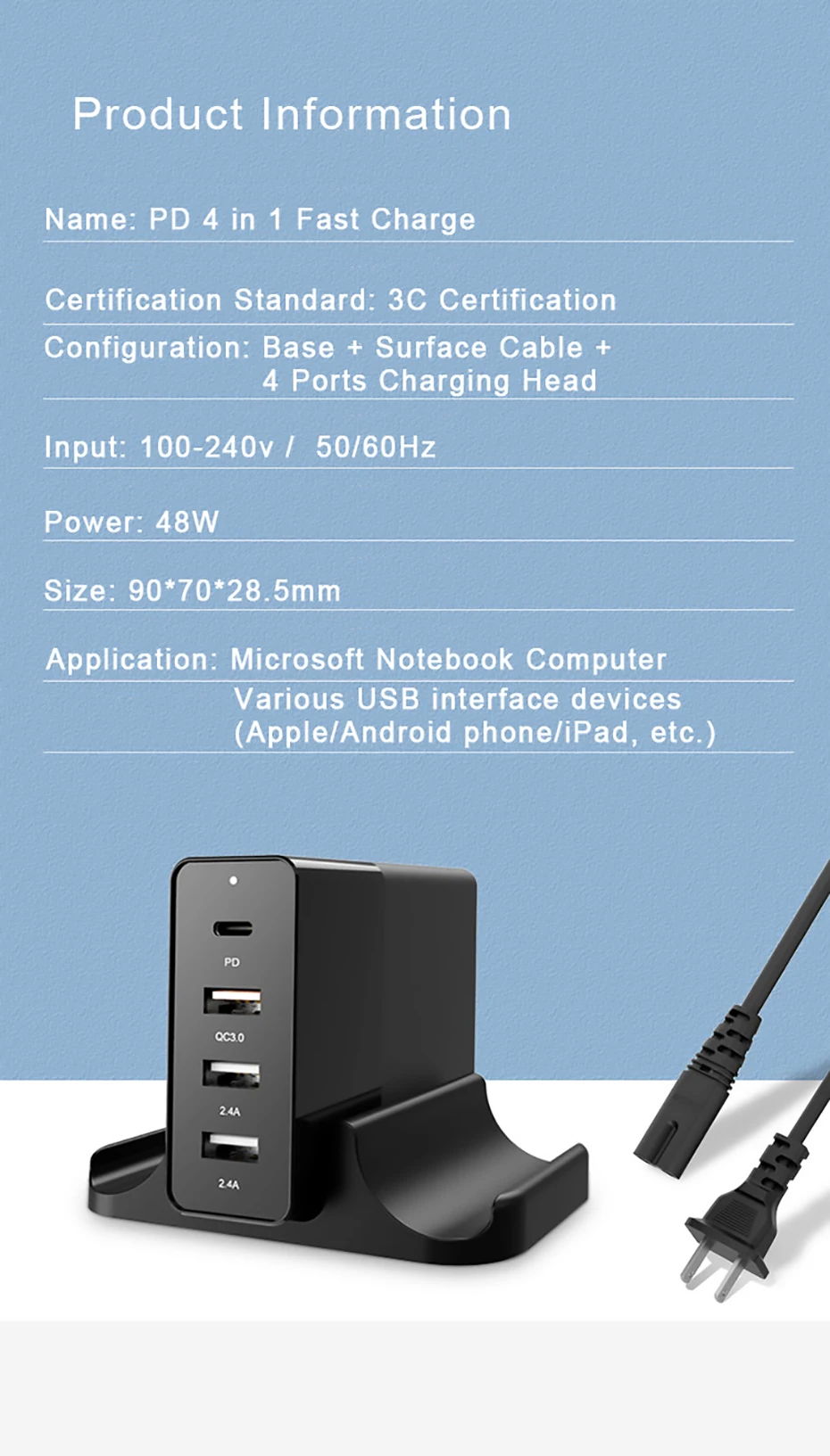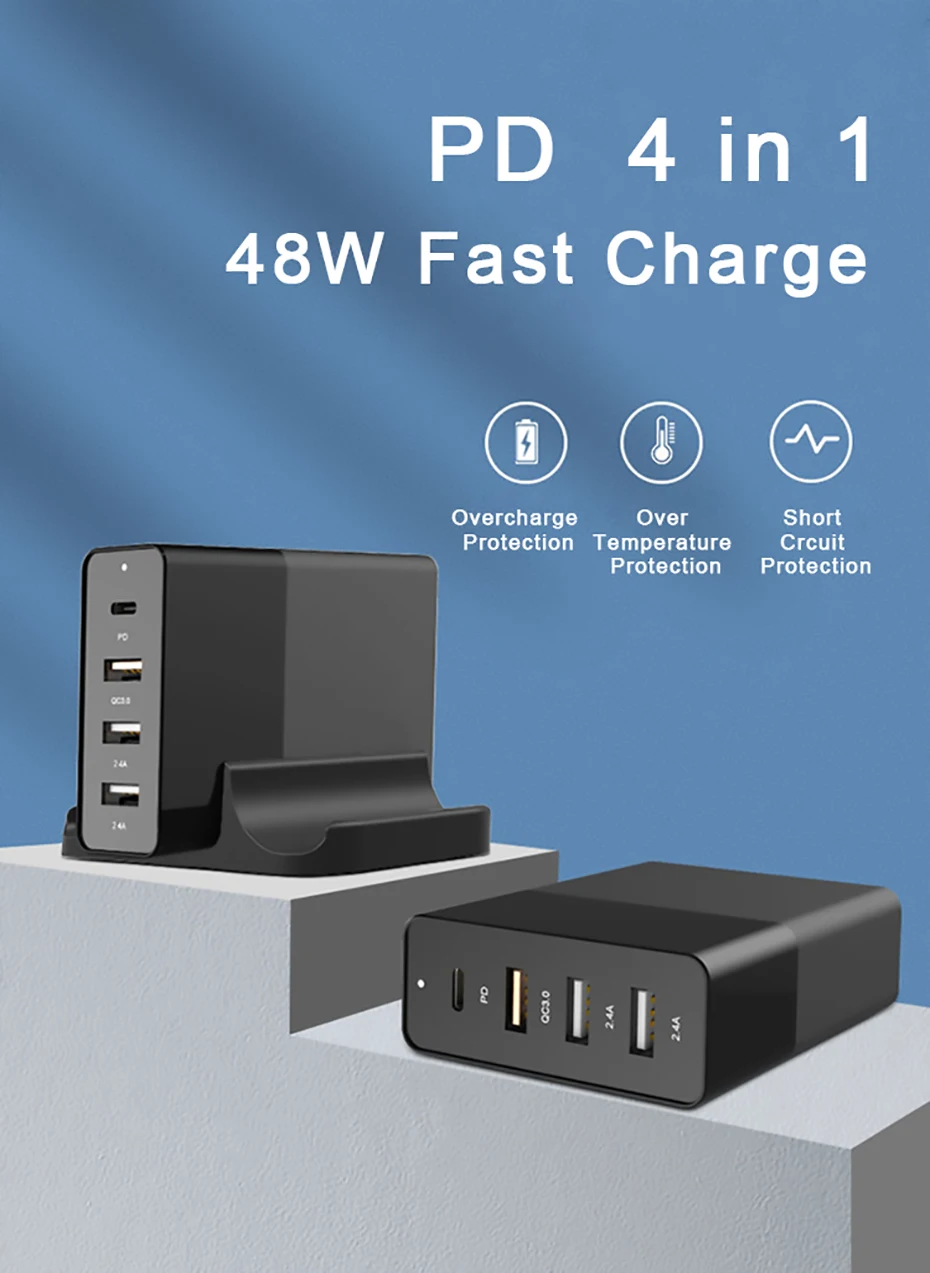 Fivetech 48 Вт Быстрая зарядка 4 порта с QC3.0 PD адаптер питания для Xiaomi iPhone Huawei Samsung зарядная станция с кабелем ЕС