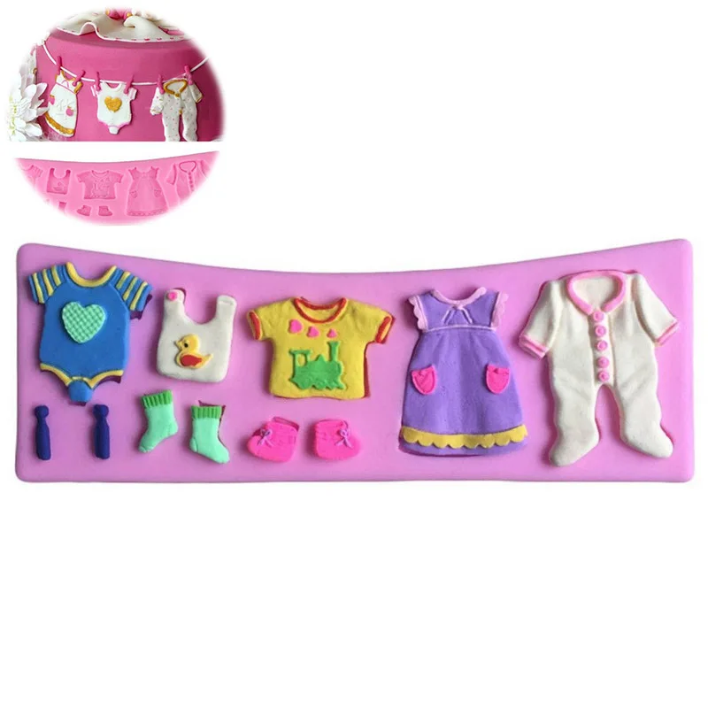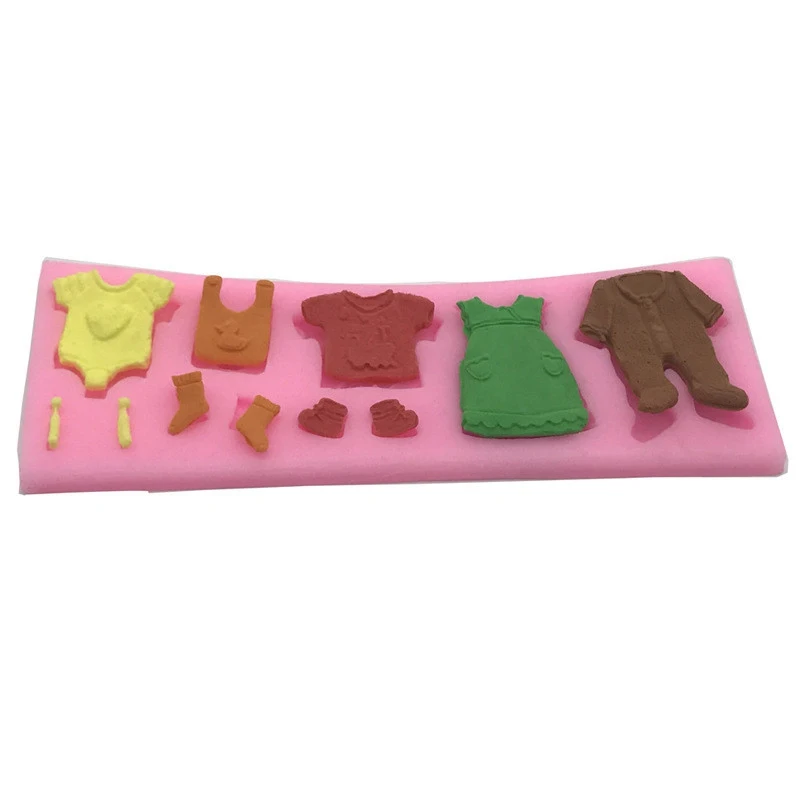 Fashion Cake Mould Chocolate Candy Fondant Baby Shower Topper Silicone Baby Clothes Mold Silicone mold