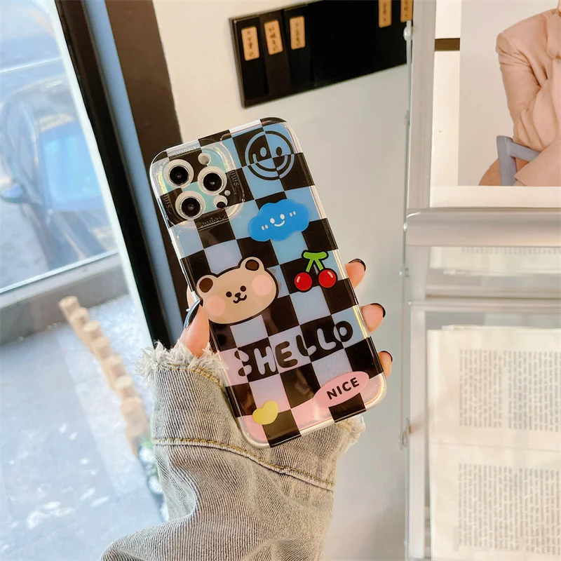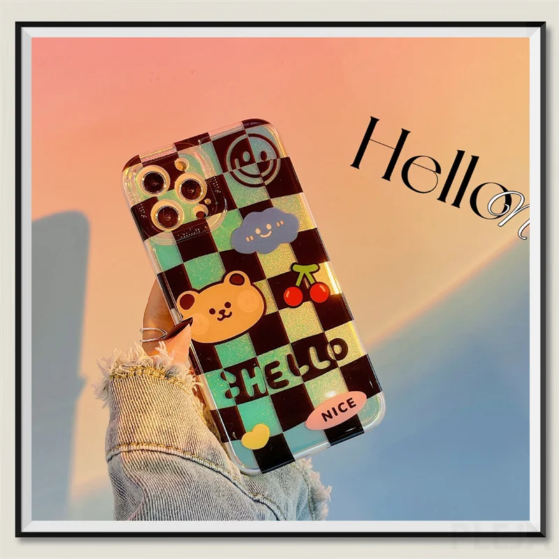 Прозрачный лазерный чехол для телефона iPhone с милым мультяшным медведем облаком