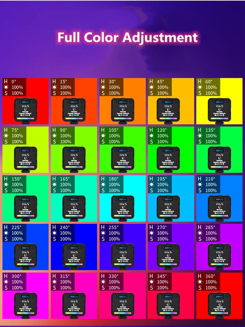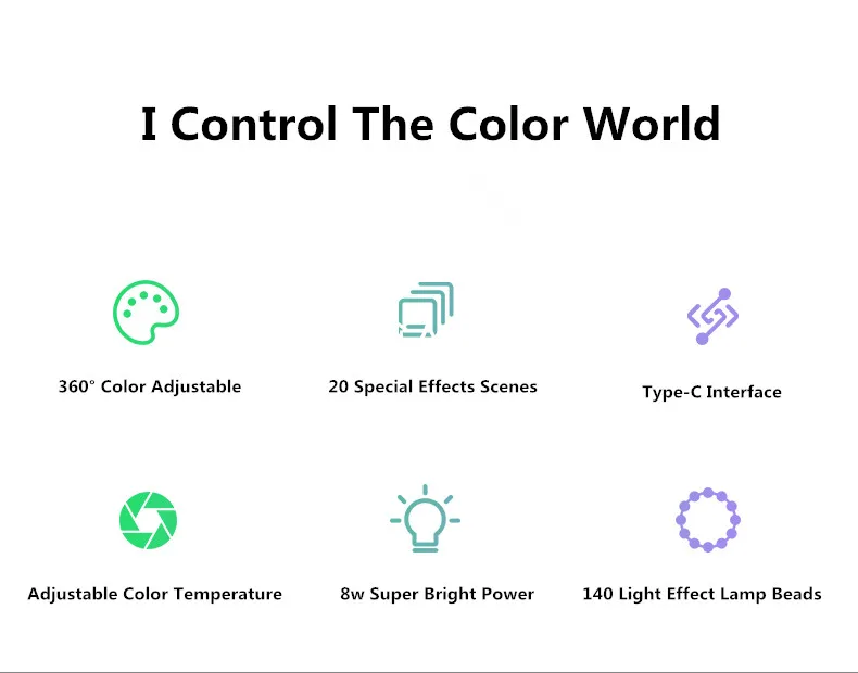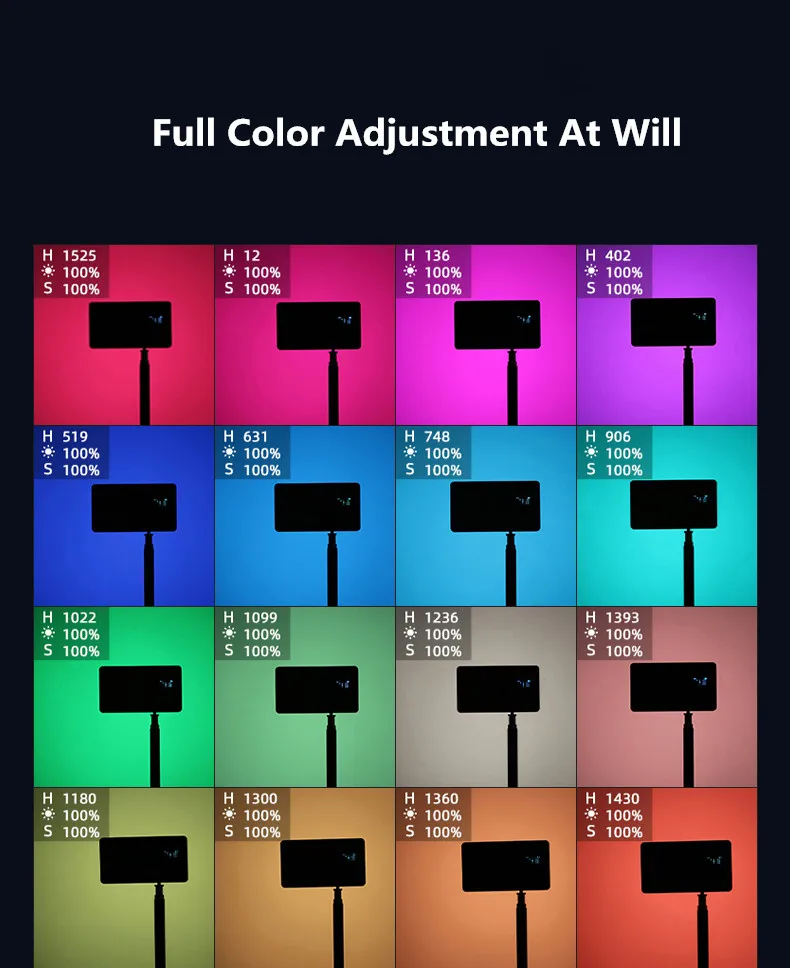 360 ° регулируемая и 0%-100% регулируемая яркость обеспечивает вам различные красочные световые эффекты. Позвольте вам быстро и одновременно создать вдохновение.