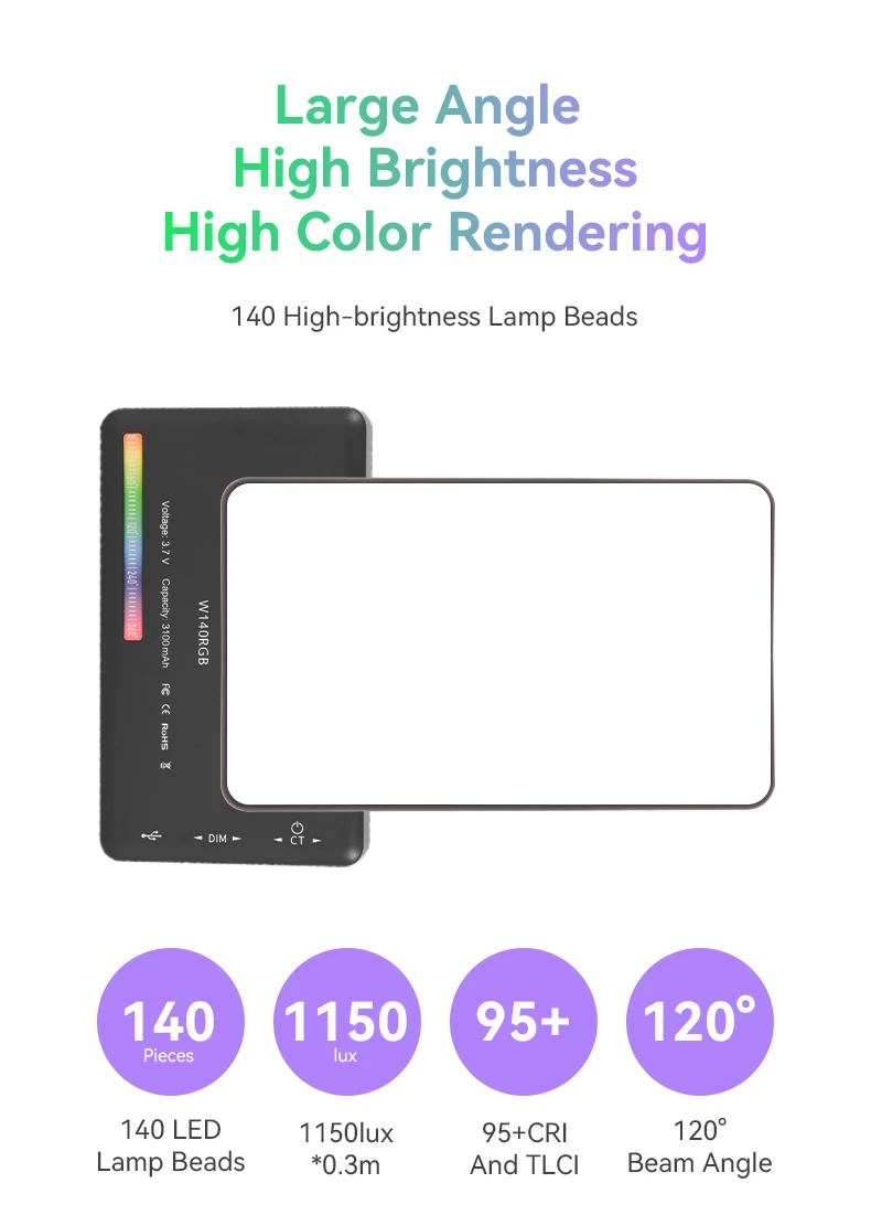 Мини светодиодный видео светильник с 140 шт. высококачественными светодиодными бусинами, Имеет выходную мощность 8 Вт и индекс цветопередачи 95 +, высокую яркость и высокую чувствительную цветовую реакцию.