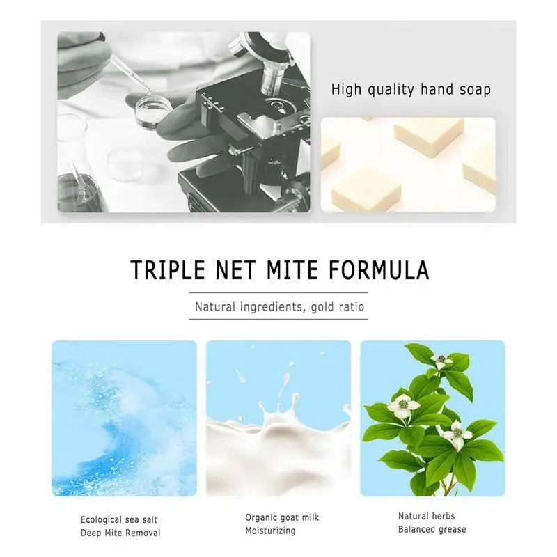 Мыло с морской солью может эффективно удалять Клещи и улучшать проблемы с кожей, вызванные клещами, такими как большие поры, прыщи, угри, жирная кожа и акне.