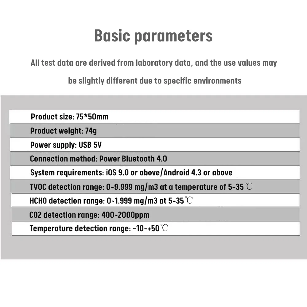 Диапазон обнаружения TVOC: 0 ~ 9,999 мг/м3 при температуре 5-35 ℃