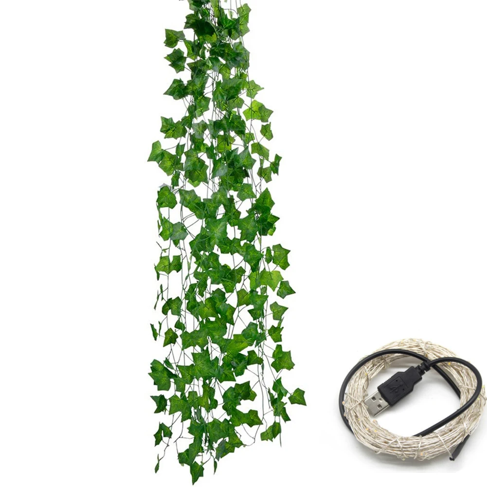 Искусственный растительный струнный светильник с зеленым листом, плющ, лоза, сказочный светильник, гирлянда с кленовыми листьями, DIY подвесной светильник для дома, сада, свадьбы, декора