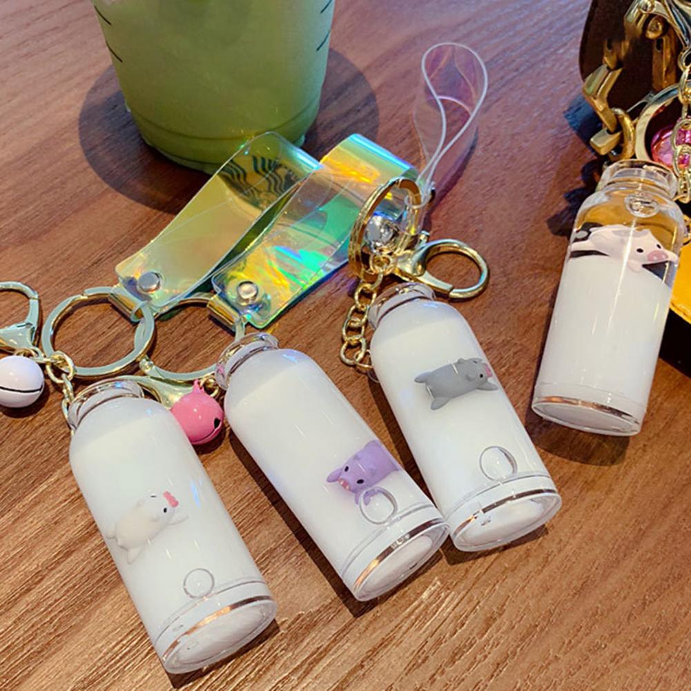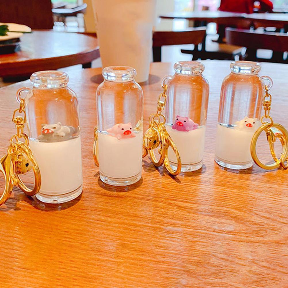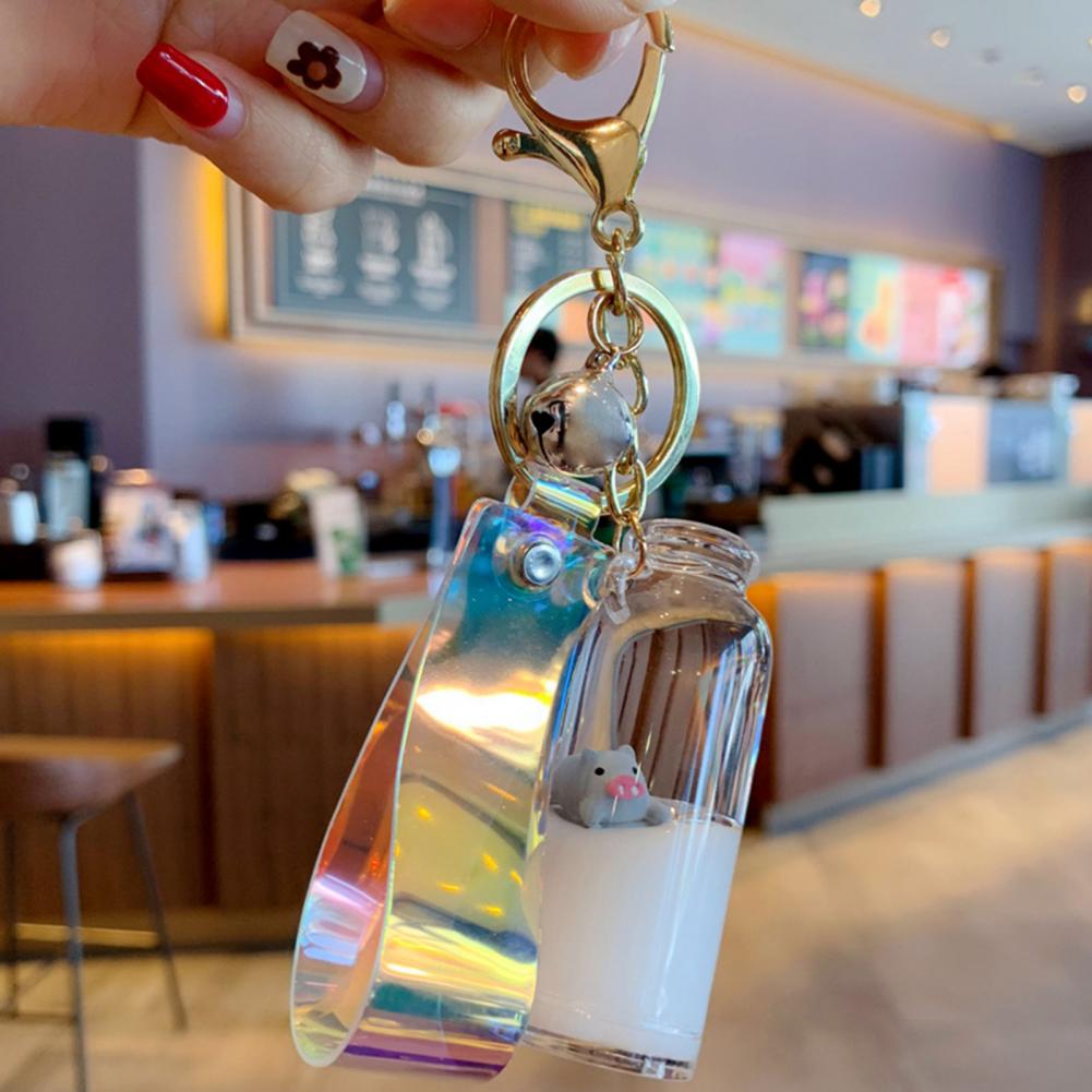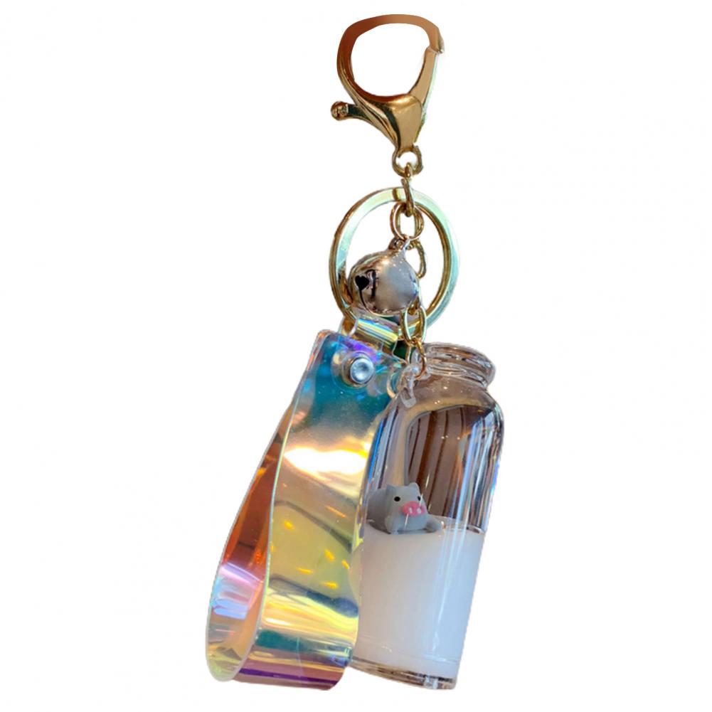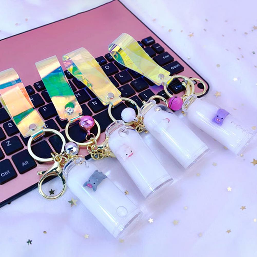 Floating Milk Pig Key Chain Drift Bottle Glass Holographic Lanyard Bell Key Pendant Decoration