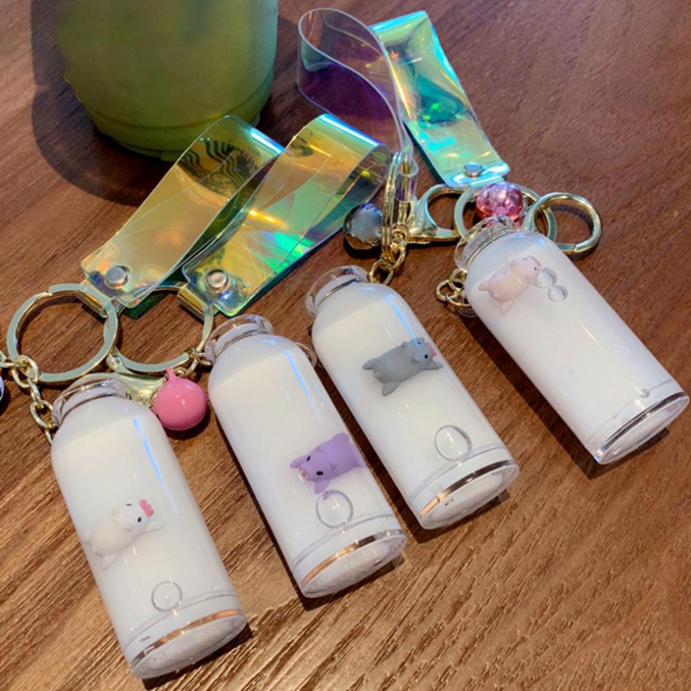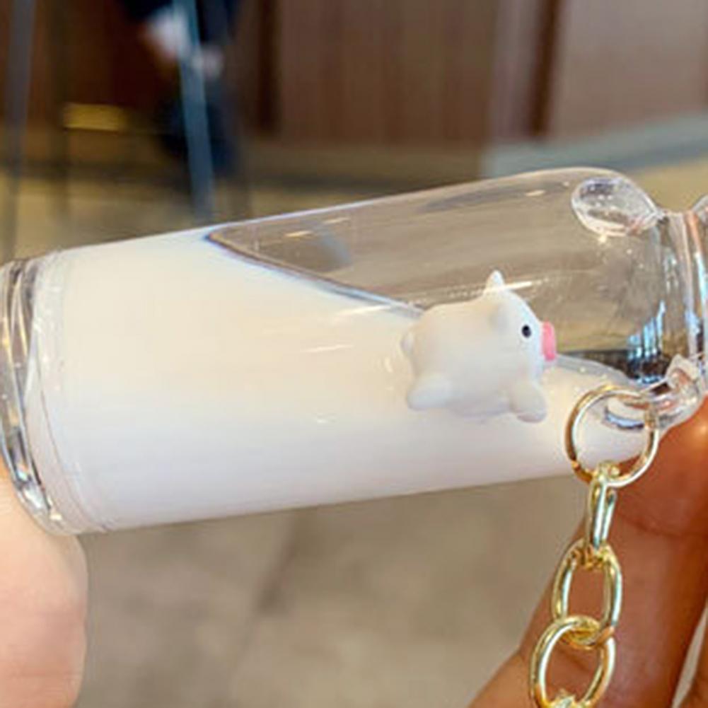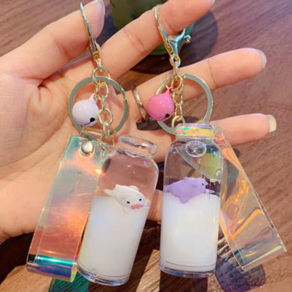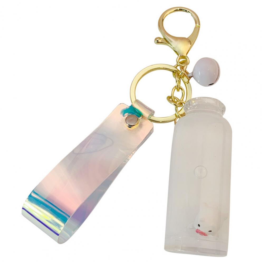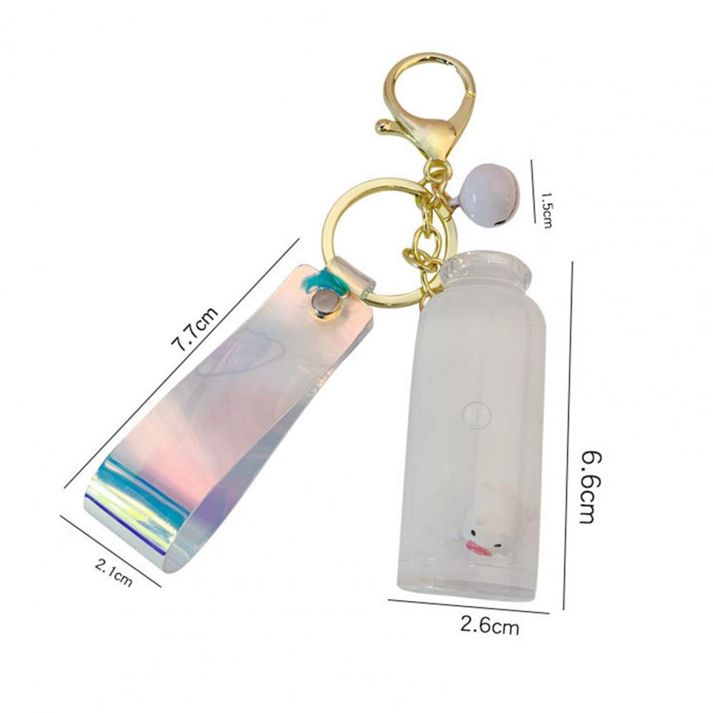Floating Milk Pig Key Chain Drift Bottle Glass Holographic Lanyard Bell Key Pendant Decoration