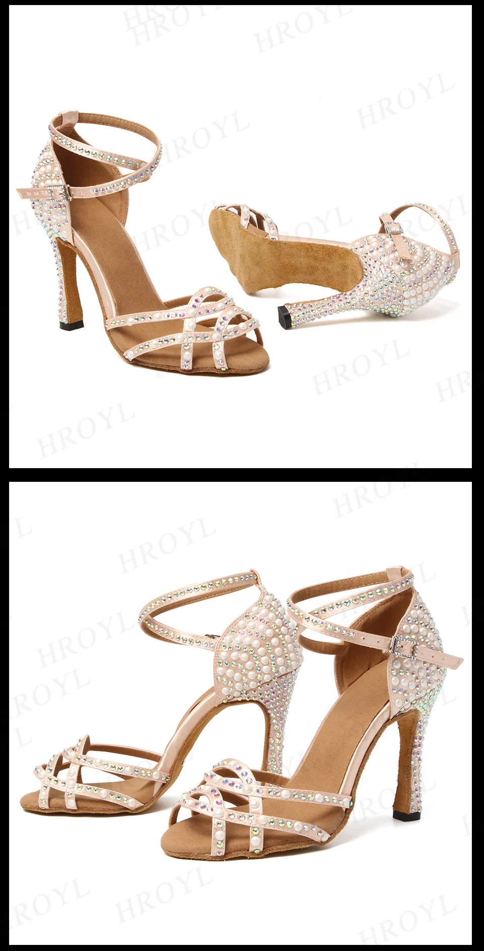 Женская обувь для латинских танцев; Великолепная Обувь для бальных танцев с кристаллами Сальса и Танго; Женские вечерние сандалии на каблуке для соревнований; Замшевая подошва