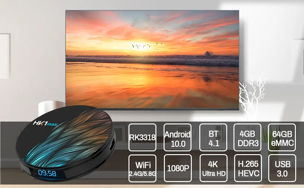 Android 11.0 and RK3318 - Raxxio HK1 MAX Android Tv boxes run with the latest Android 11.0 OS, RK3318 Quad-Core 64bit Cortex-A53 with Penta-Core Mali-450 Up to 750Mhz.