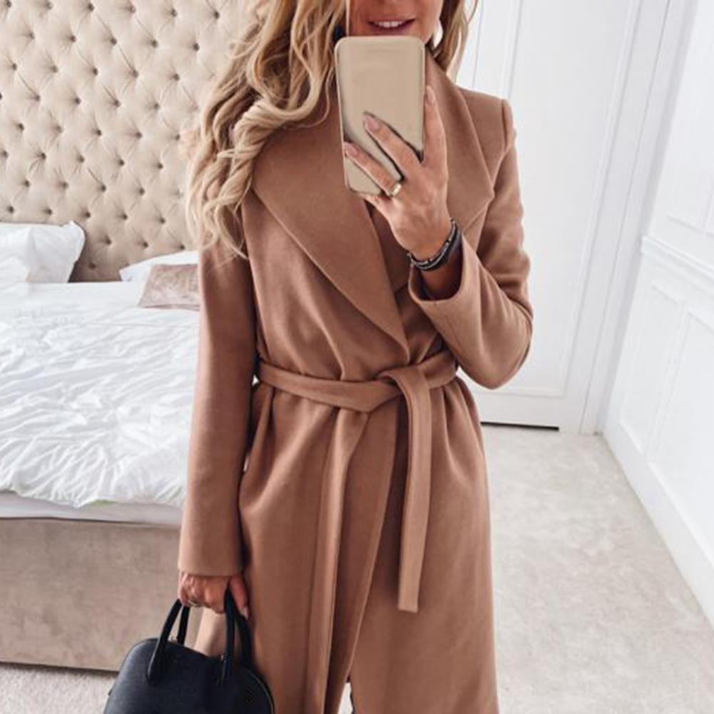 Дизайн с большими лацканами делает вас очень изящным и темпераментным. А пояс можно использовать для регулировки размера талии и завязывания узла, чтобы сделать пальто более модным.