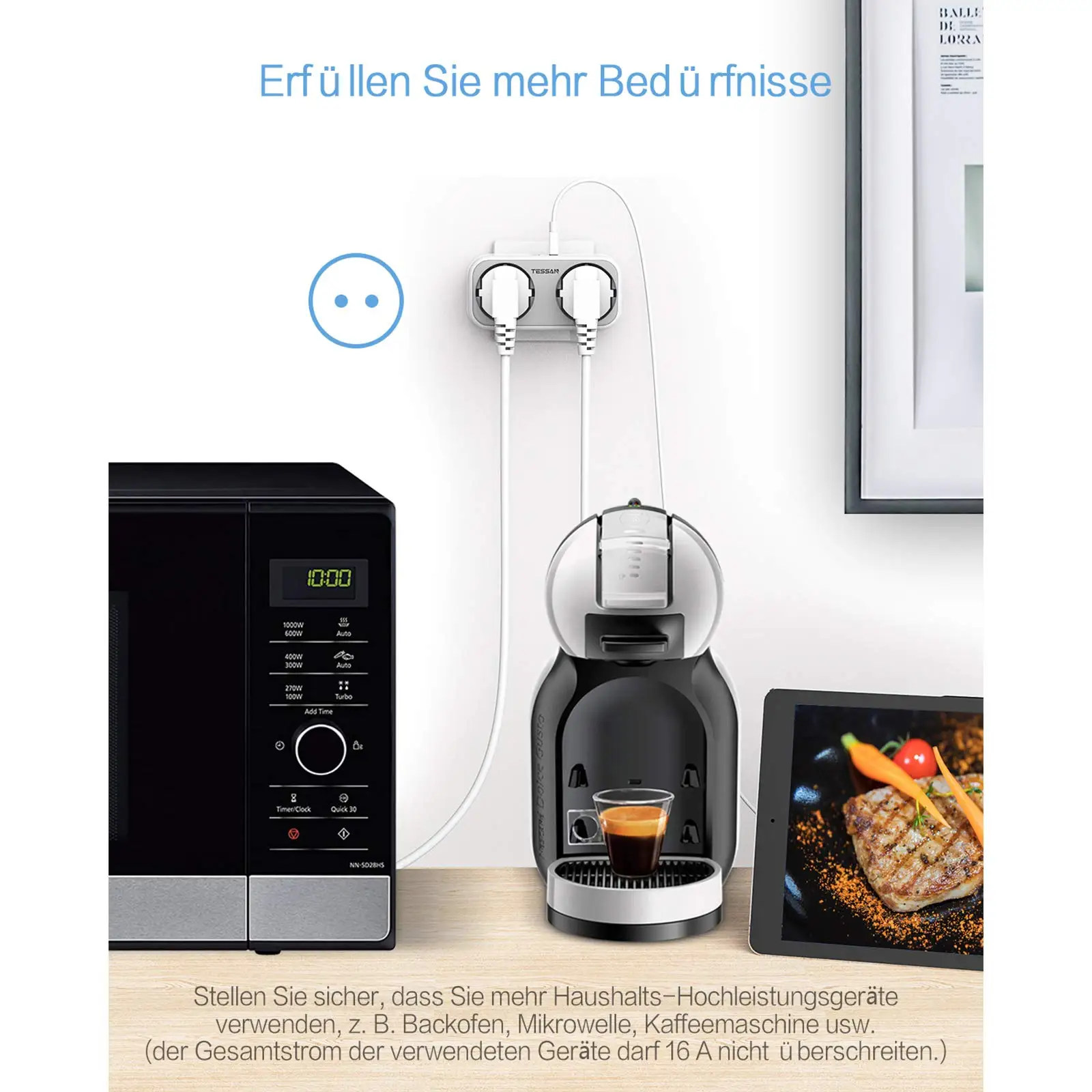 TESSAN несколько штепсельных вилок с 3 выходами переменного тока и 3 usb-портами (2.4A)