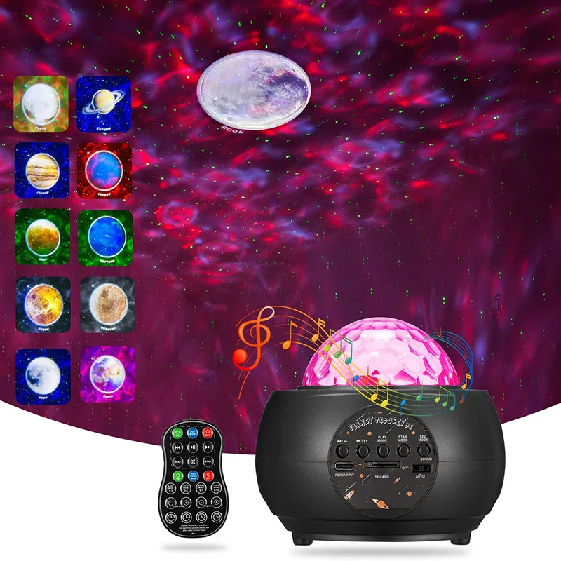 Remote control function: laser brightness, water pattern, bluetooth mode, water pattern single control, laser single control, planet single control, voice control, timing, switch