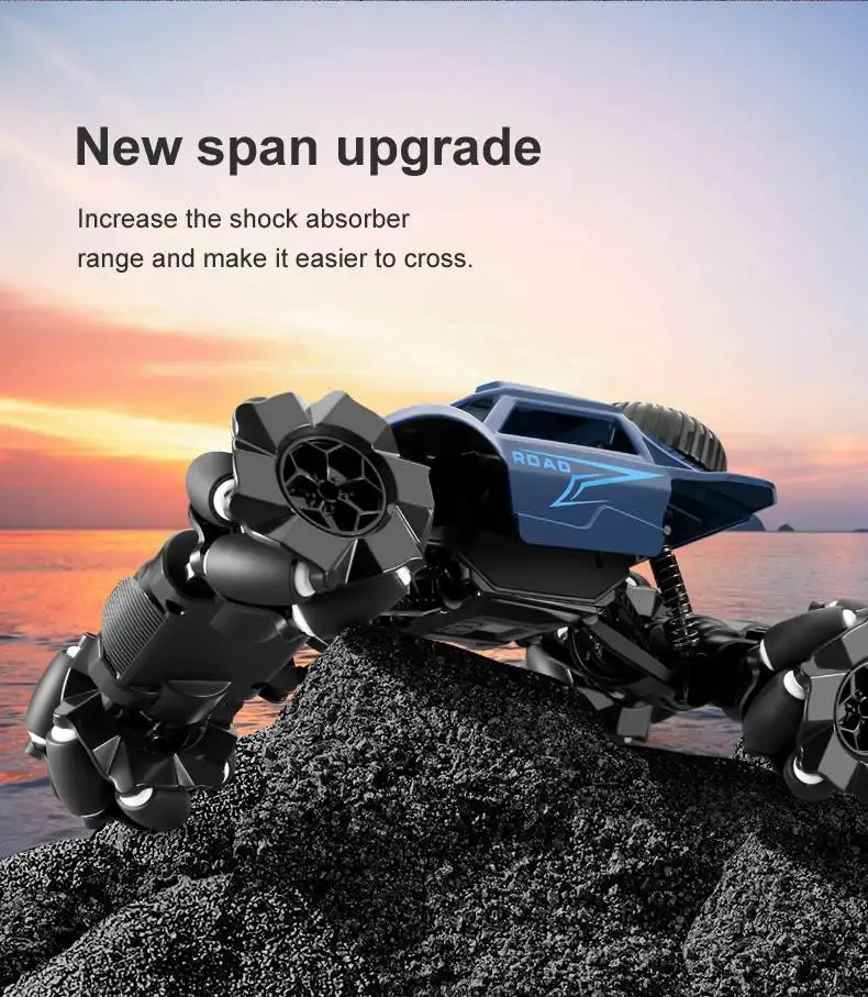 -Радиоуправляемый передатчик 2,4 ГГц, независимая четырехколесная система подвески, постоянное вождение.