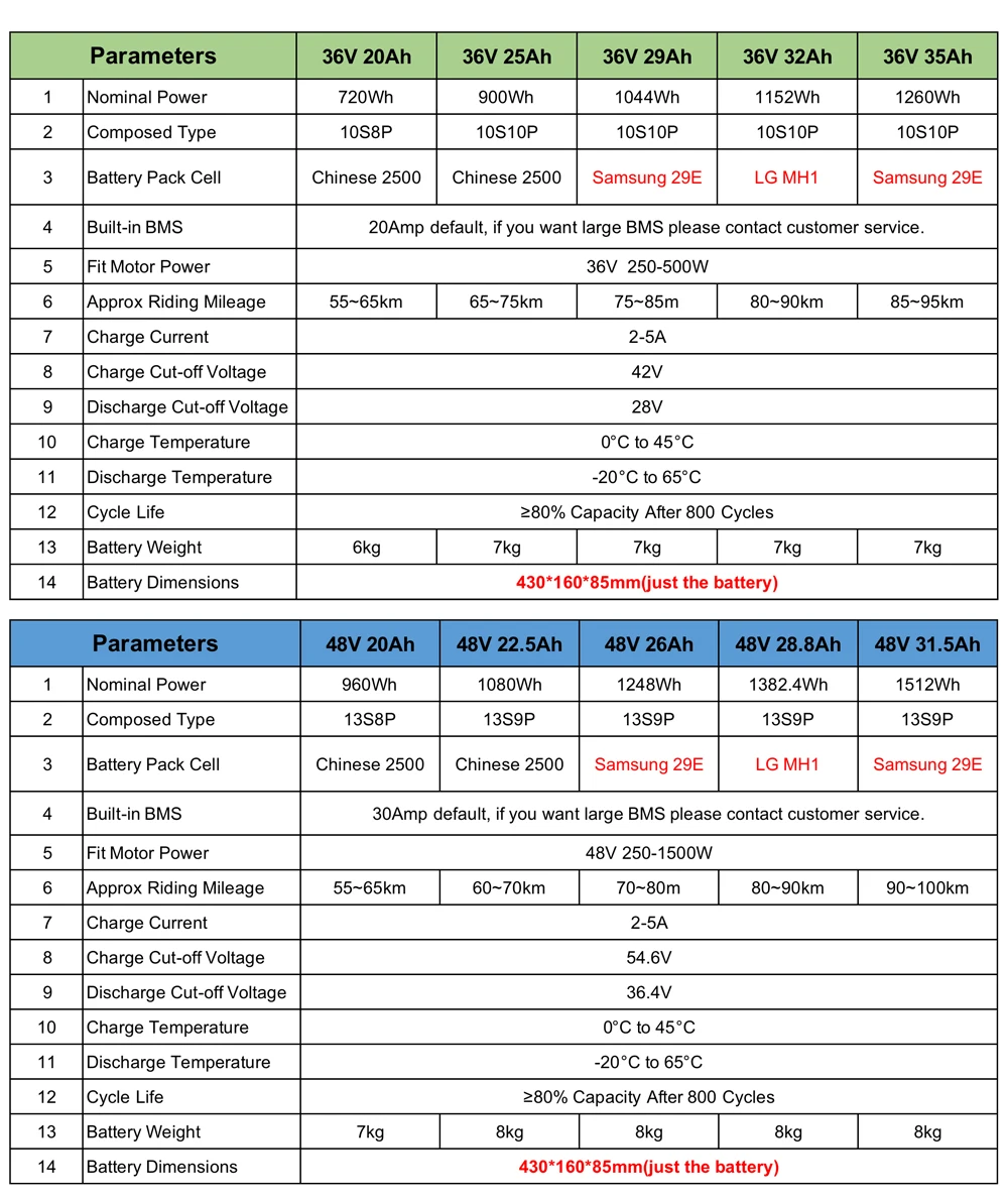 * Тип ячейки: класс A Samsung, LG Cell, Panasonic cell или высокомощные китайские 18650 Li-Ion cells