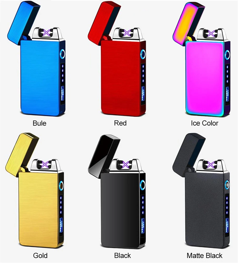Двойная дуговая электрическая зажигалка USB перезаряжаемая сенсорная пальчиковая Зажигалка LED дисплей питания ветрозащитная плазменная зажигалка аксессуары для сигарет