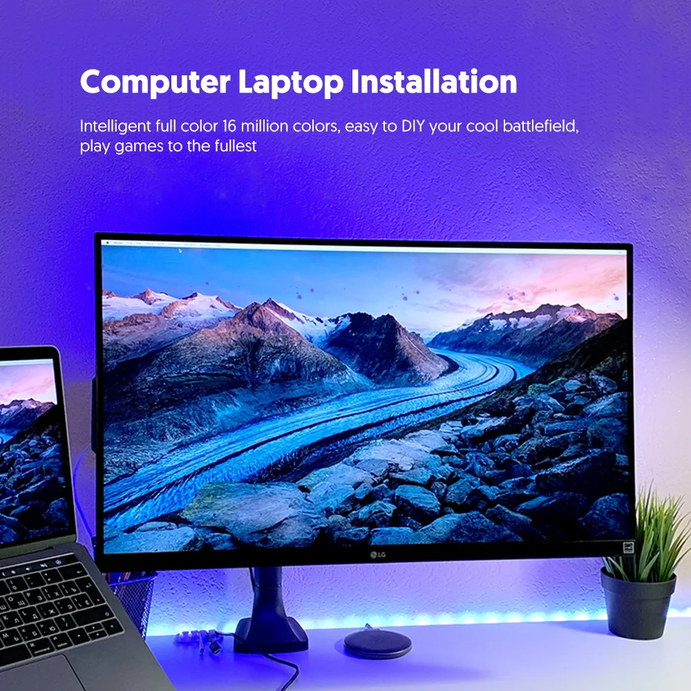 4. Умное Голосовое управление (Управляйте смарт-ТВ-подсветкой с помощью простых голосовых команд через Alexa и Google Assistant, наслаждайтесь доступом к большему количеству цветов и функций, таких как таймер, видео, синхронизация звуков, помогает вам создать атмосферу, которая вам нужна.)