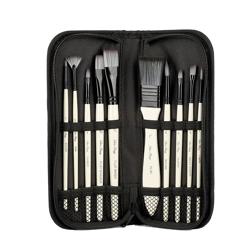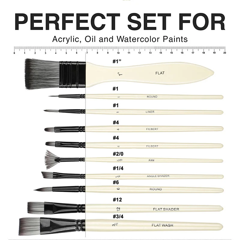 Отличный выбор: набор содержит 10 тщательно подобранных акриловых кистей разных типов и размеров: они