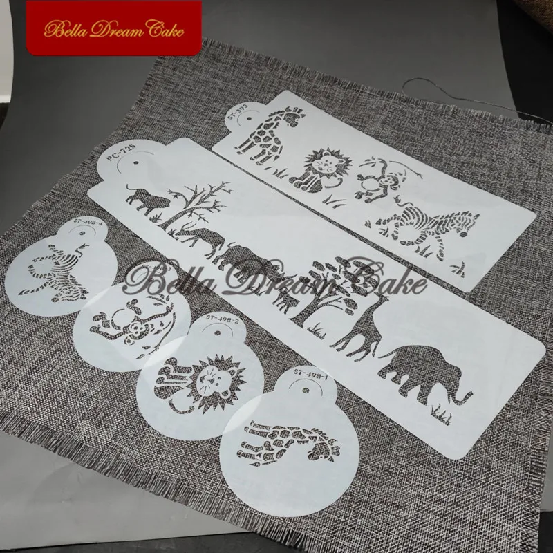 3 стиля, трафареты для торта с изображением животных джунглей, трафареты для шоколада, кофе, печенья, шаблон, сделай сам, Аэрограф, спрей, инструмент для украшения торта