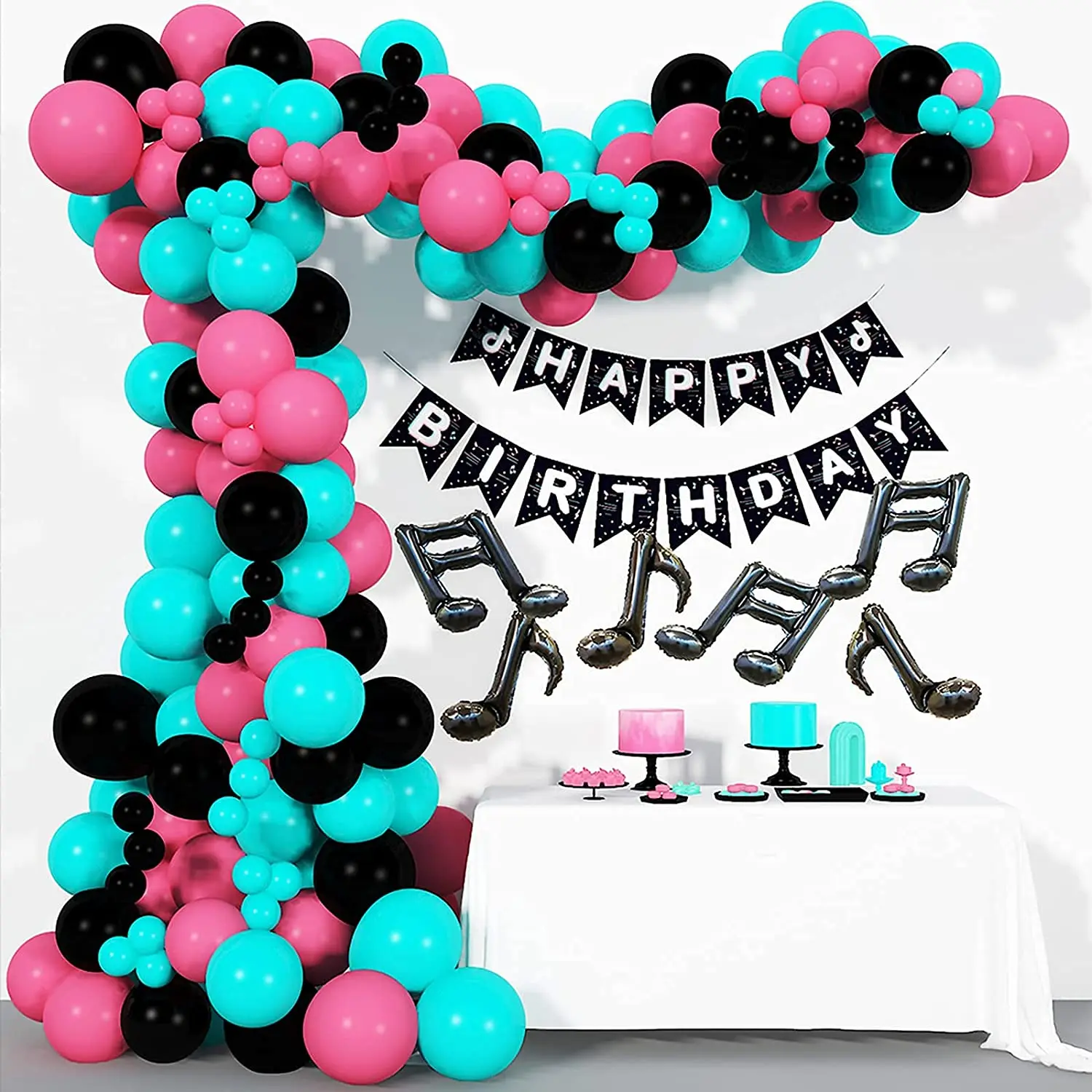 1Set Birthday Party Music Balloon Foil Background DIY Foil Curtains Musical Note Party Supplies for Both Kids and Adults Decor