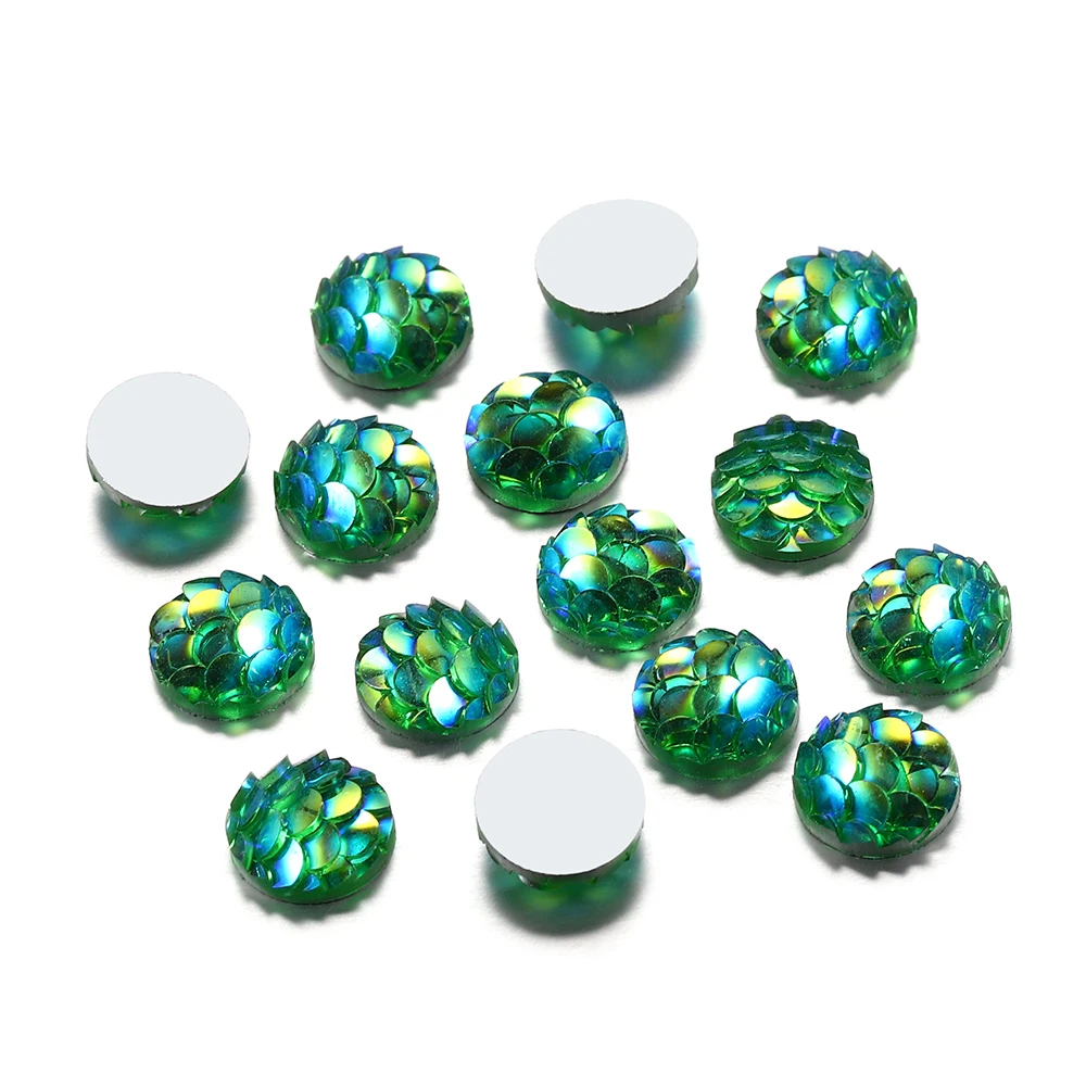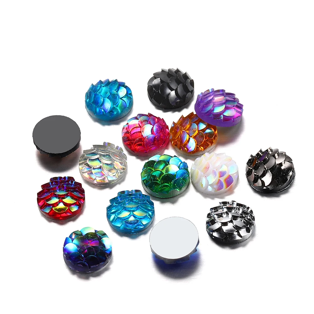 50 шт./лот 8 мм стереоскопический эпоксидный кабошоны Русалка рыбья чешуя круглый стеклянный кабошон для DIY ювелирных изделий Аксессуары