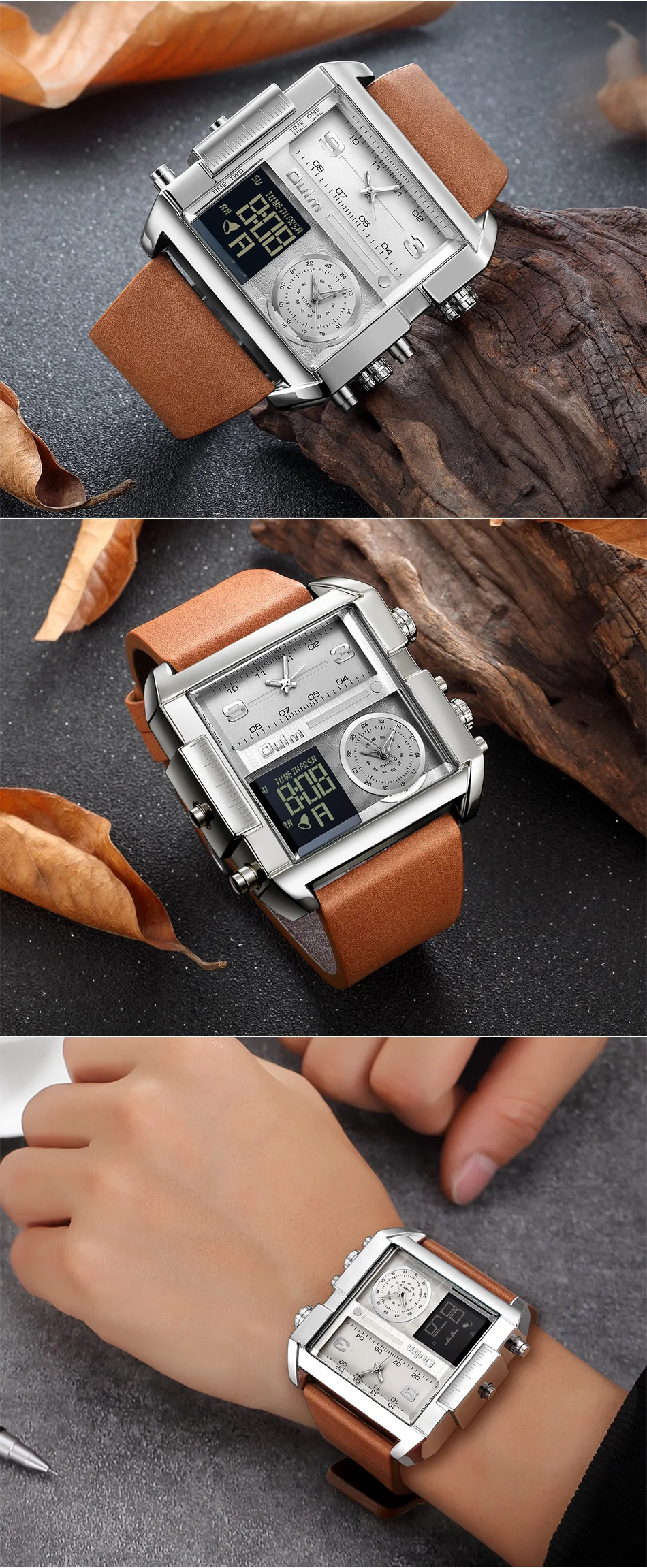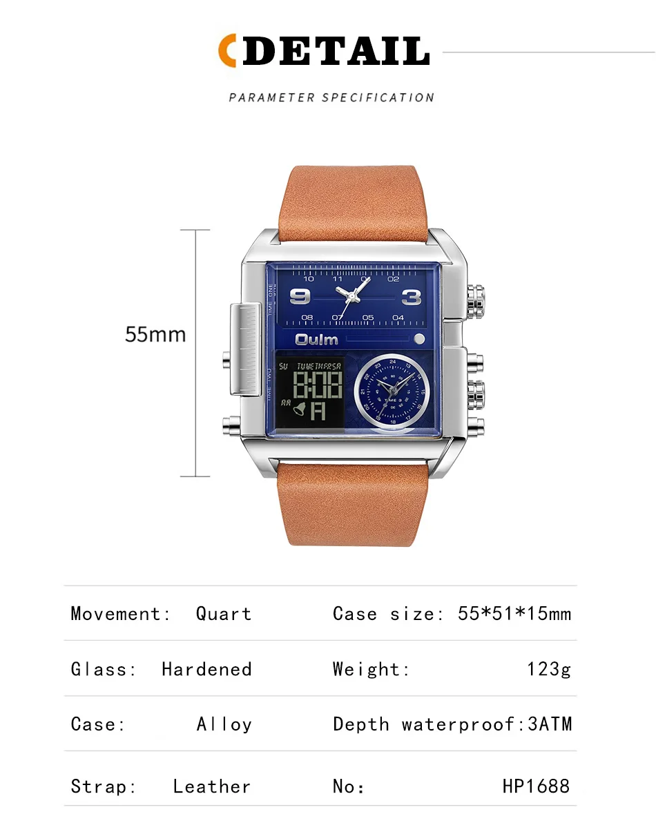 Мужские спортивные часы Oulm, мужские военные цифровые кварцевые часы, роскошные брендовые модные кожаные Наручные часы с квадратным циферблатом, Relogio Masculino