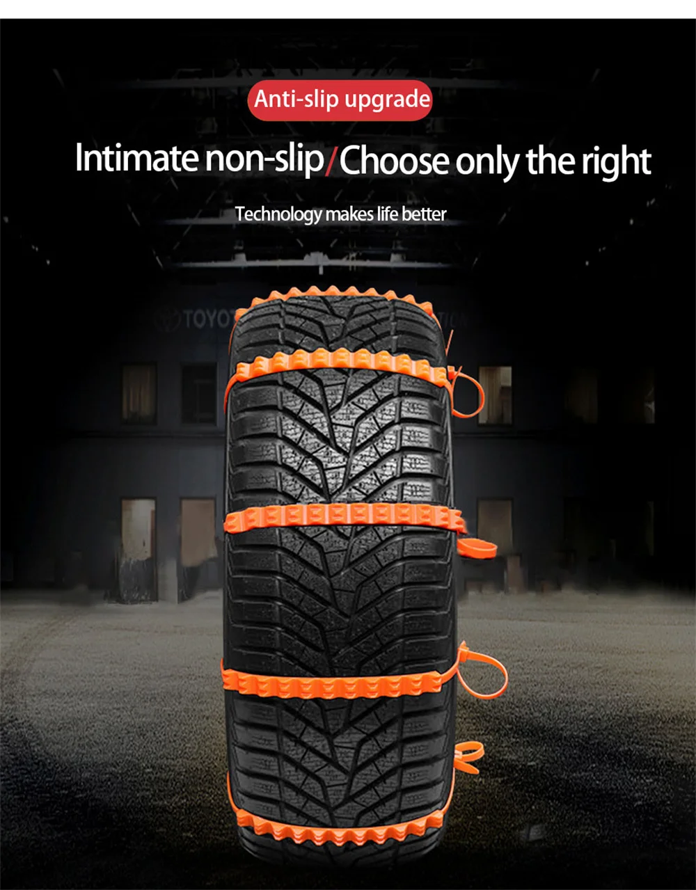 Ряд Противоскользящих канавок расположены горизонтально на внешней части снежной цепи, образуя бесчисленные точки захвата и одновременно удаляя снег и Нескользящие. Разумный механический принцип конструкции Увеличивает трение между шиной и землей, чтобы достичь хорошего противоскользящего эффекта.