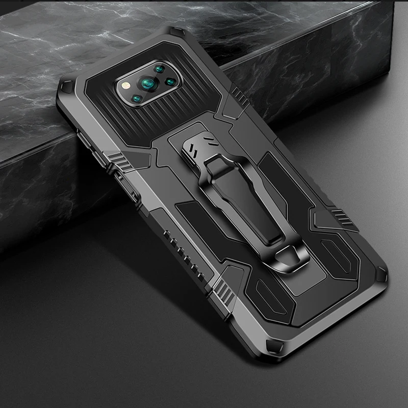 Защитный чехол на заднюю панель для POCO X3 NFC Pro с зажимом для ремня, ударопрочный чехол, чехол
