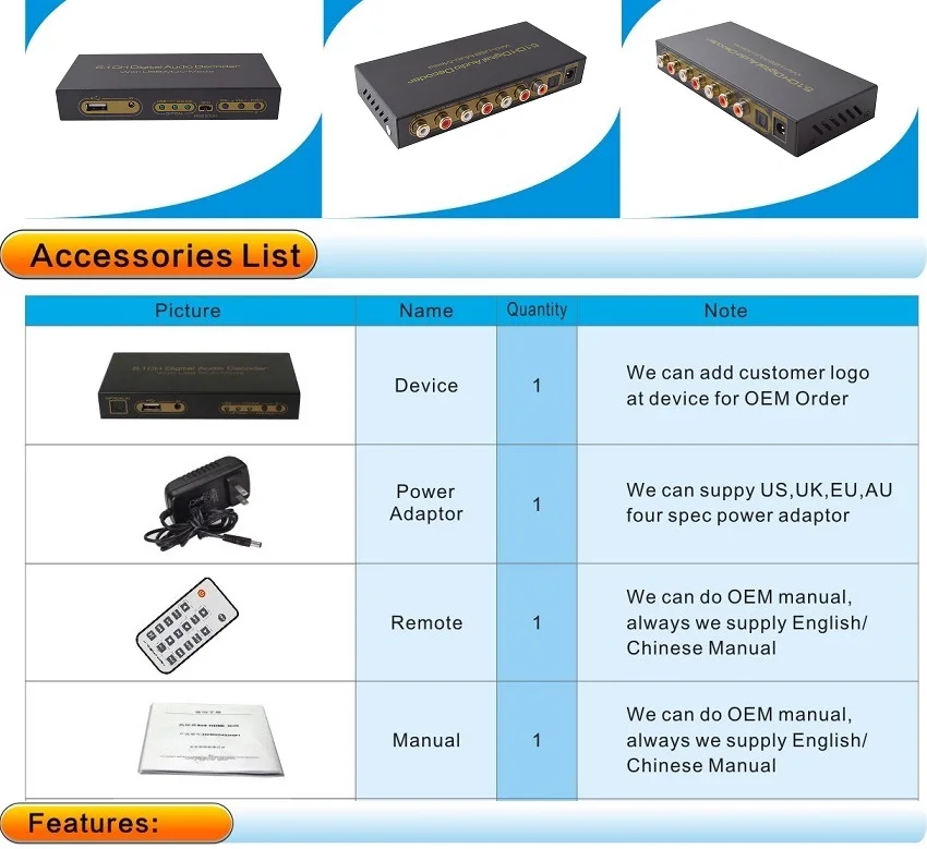 ☆Два порта SPDIF (1 x Оптический и 1 x коаксиальный) цифровой аудио вход, один интерфейс USB2.0.