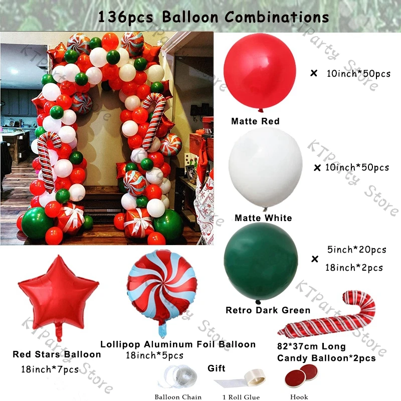 167 шт. Рождественский матовый красный зеленый шар гирлянда арочный комплект Рождественская алюминиевая фольга красная конфетная Подарочная коробка Звездный баллон новогодний декодер