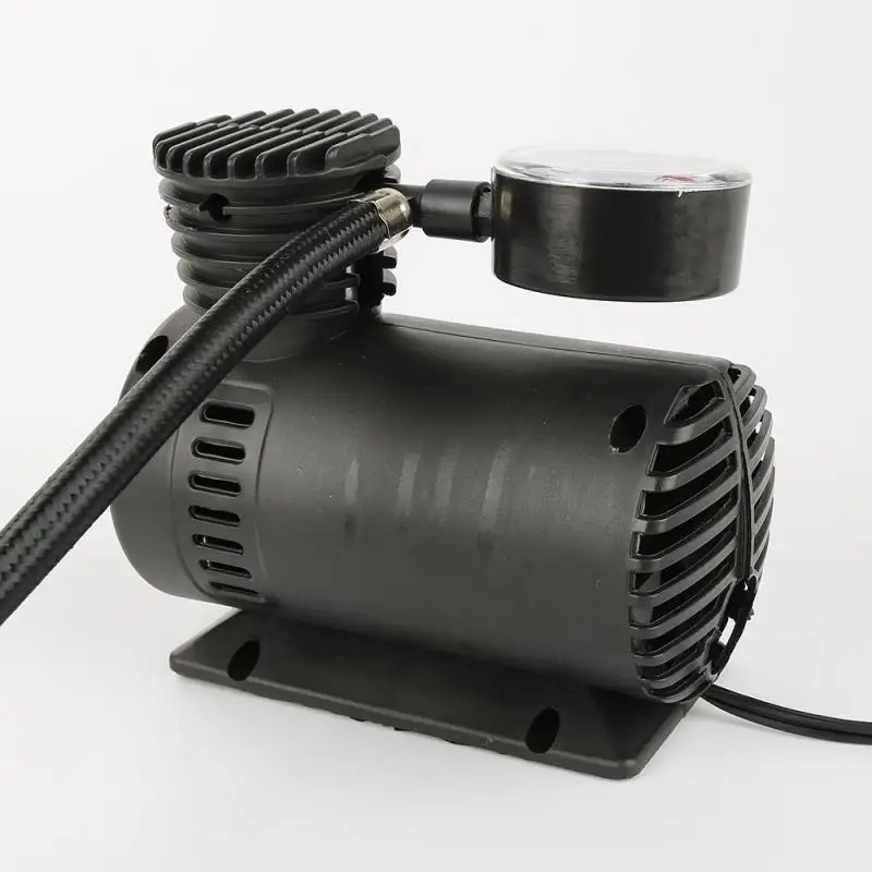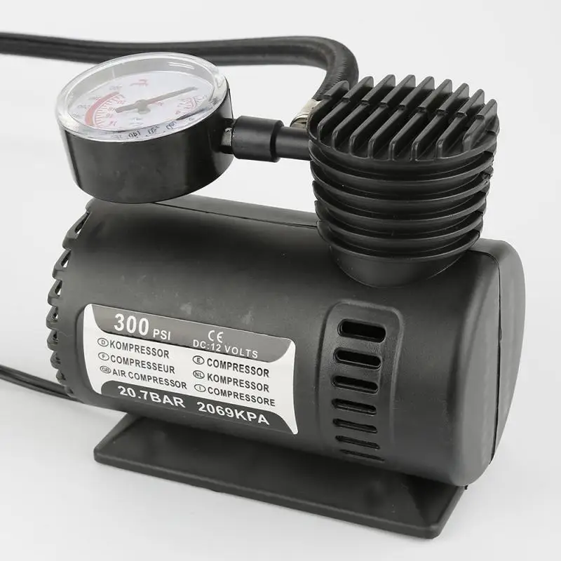 Мини Воздушный компрессор-это небольшая версия портативного воздушного компрессора. Они имеют небольшой электродвигатель, который сжимает воздух в небольшом прилагаемом цилиндровом баке. Этот тип ультра портативного компрессора может быть подключен к автомобильной системе 12 В для ремонта или надувания на ходу.