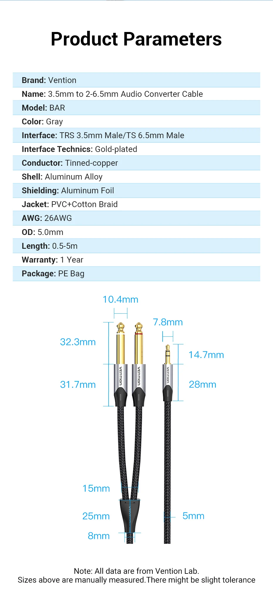 Предназначен для устройств с разъемом 3,5 мм для подключения к устройствам с разъемом 2-6,5 мм
