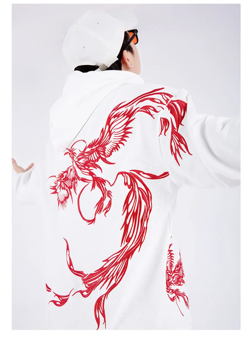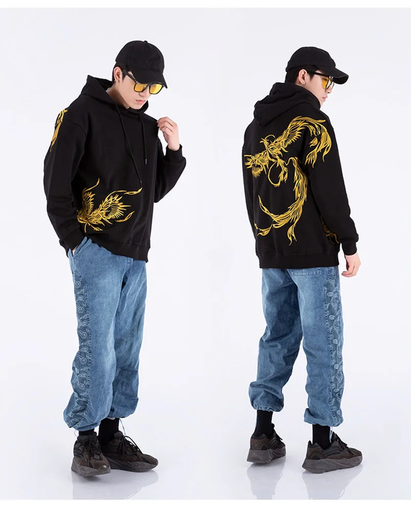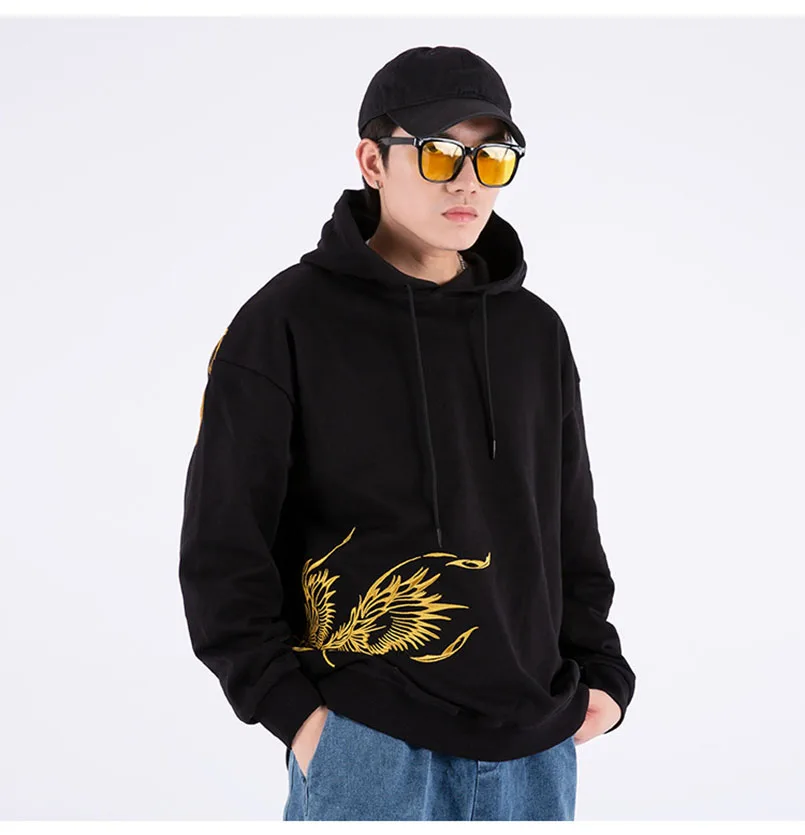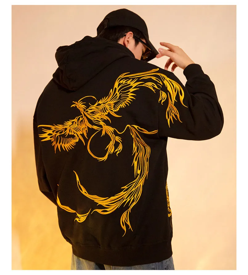 Толстовка с капюшоном и вышивкой Феникса, мужская толстовка с длинным рукавом оверсайз Sukajan, Брендовые мужские джемперы для подростков, осень 2021
