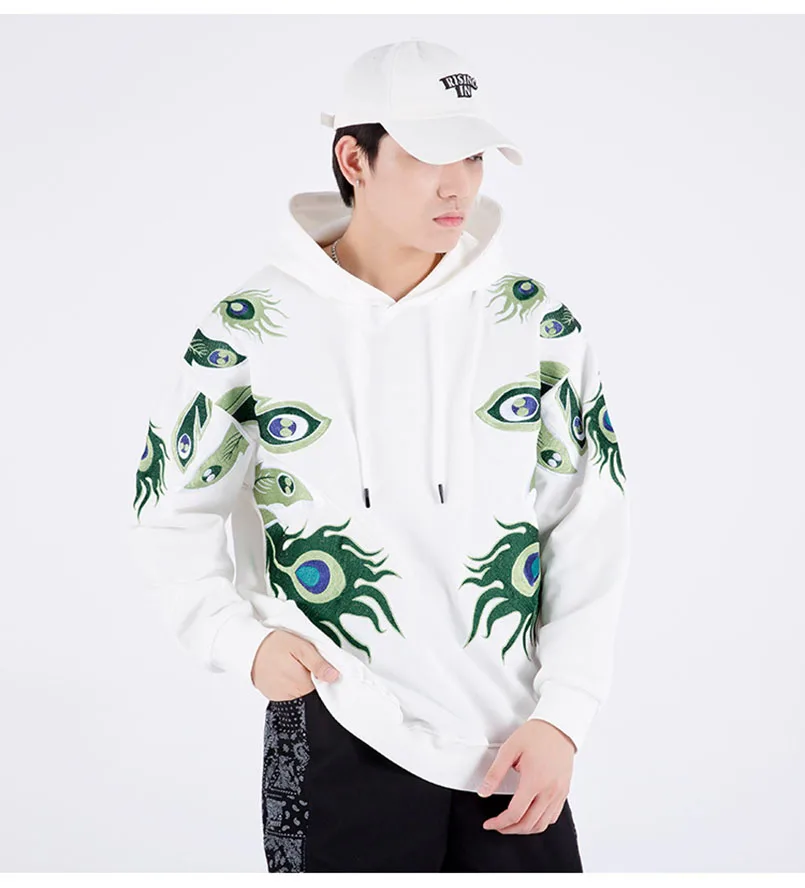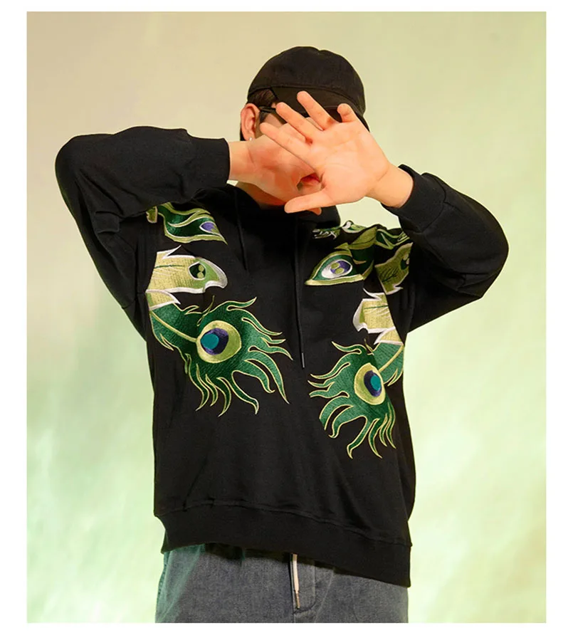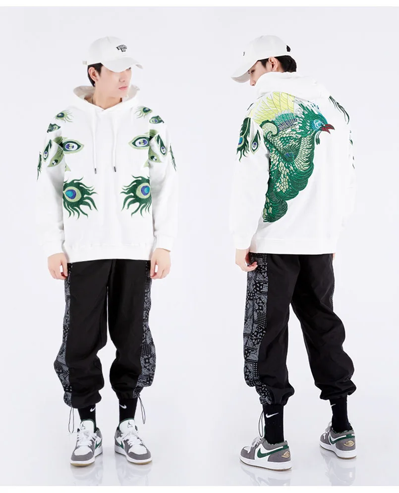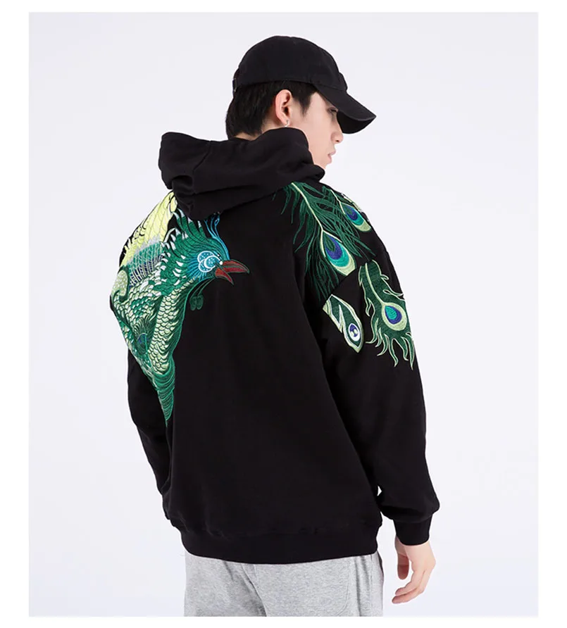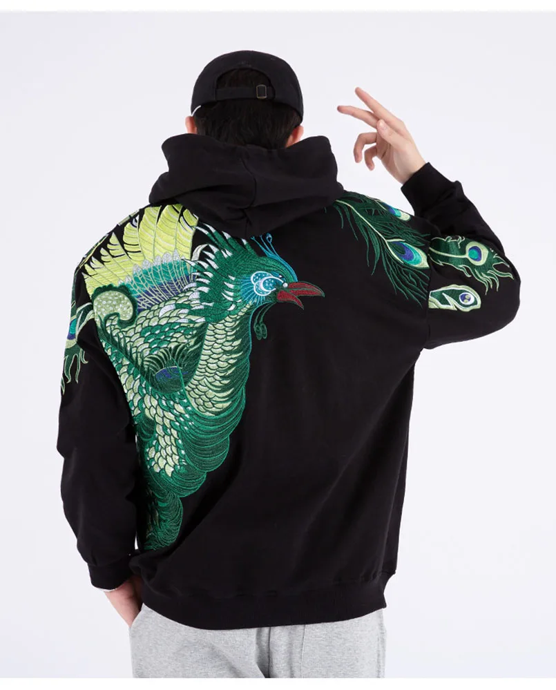 Мужская толстовка с вышивкой павлина и шляпой хип-хоп, большие размеры, Sukajan, толстовки, Японская уличная одежда, мужские джемперы, свитшоты, осень 2021